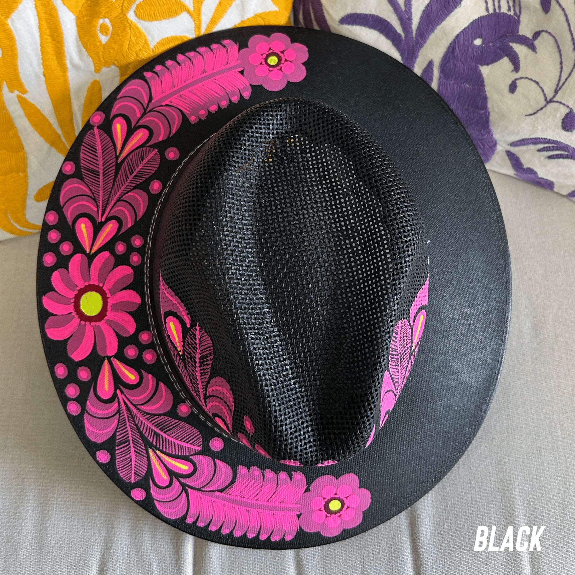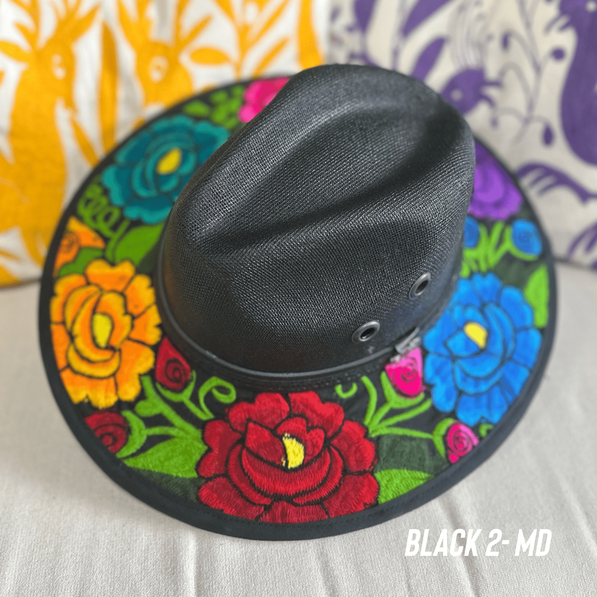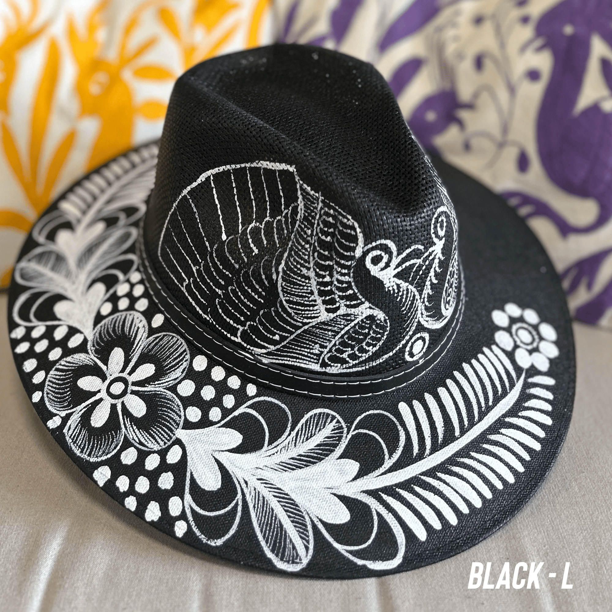 Mexican Hand Painted Black and White Sun Hat