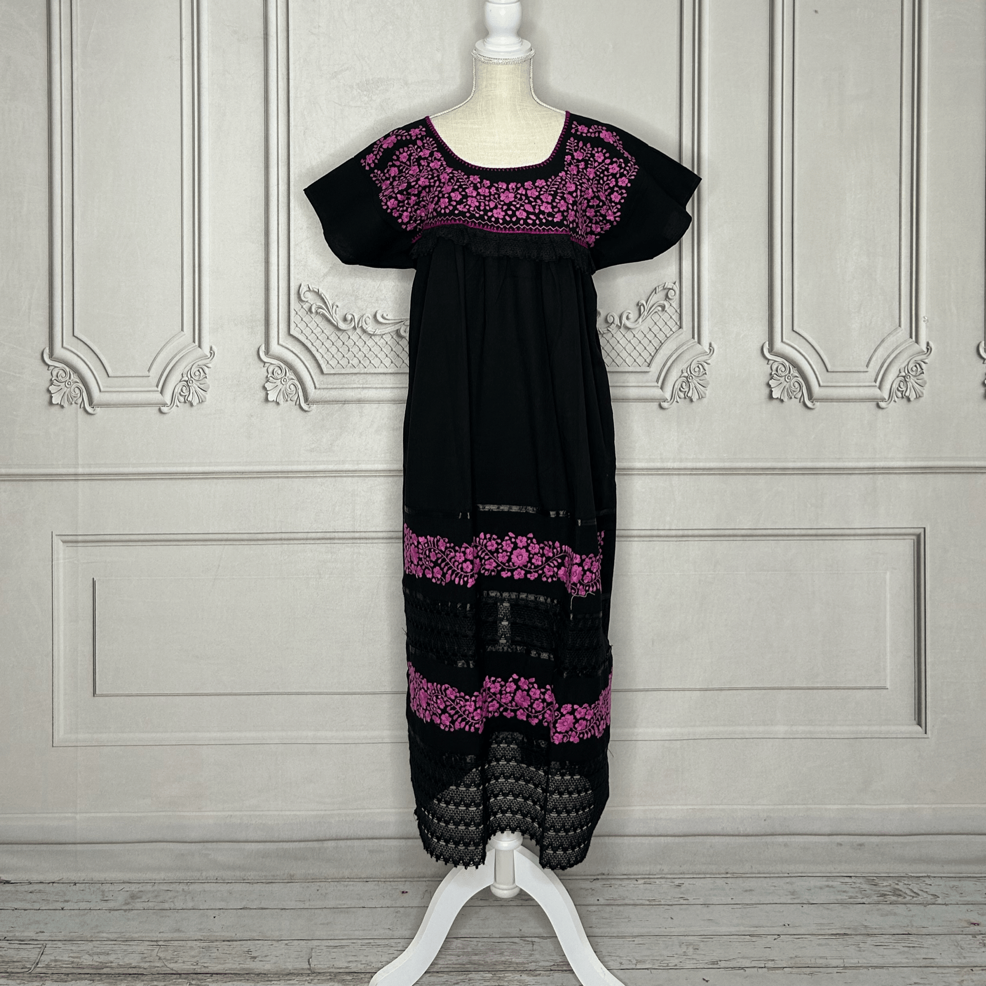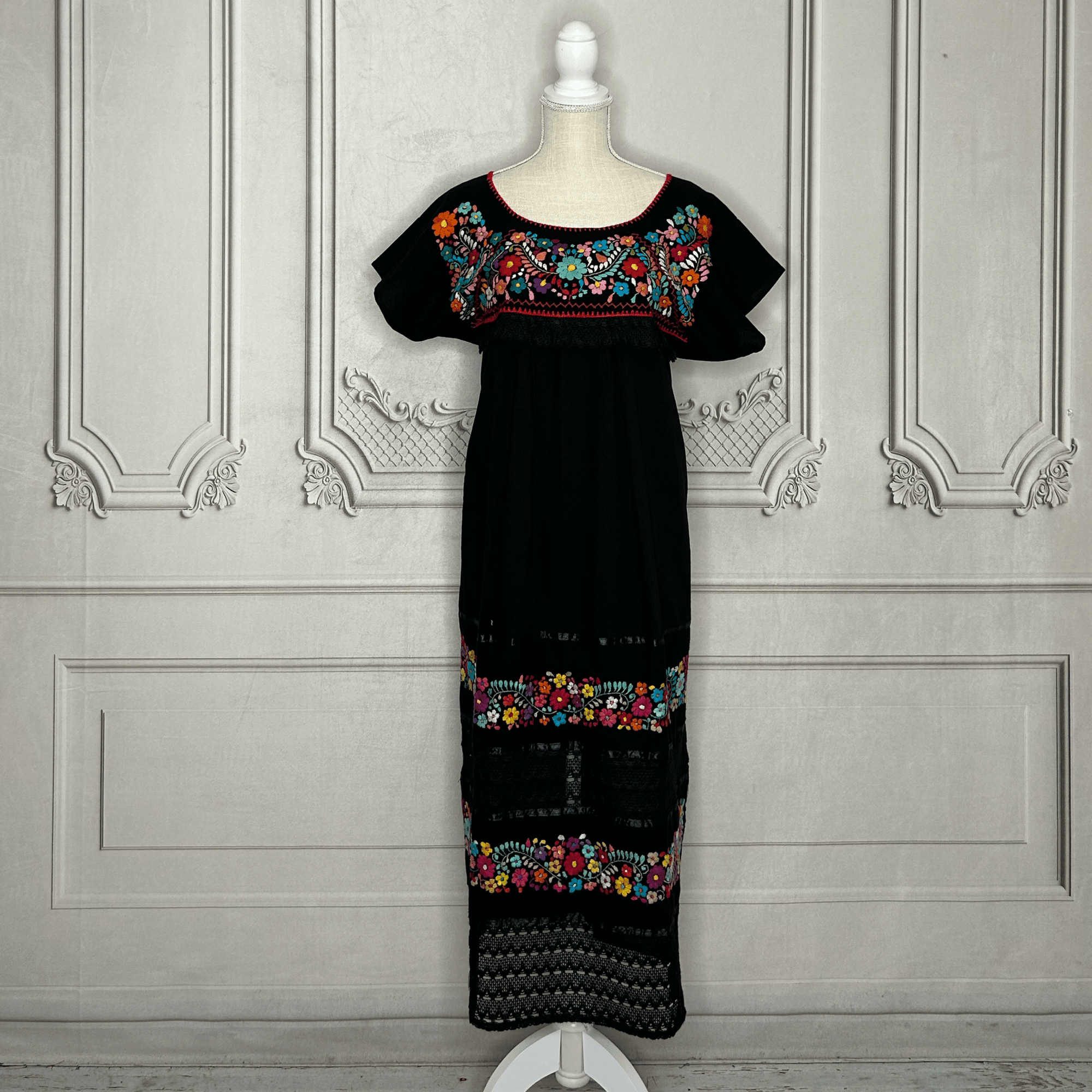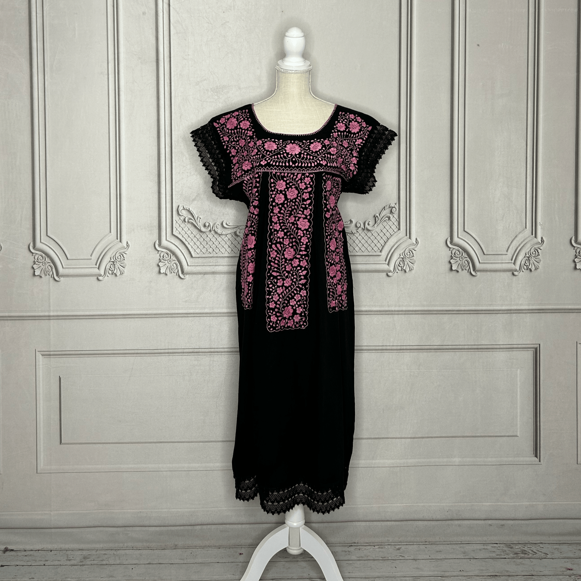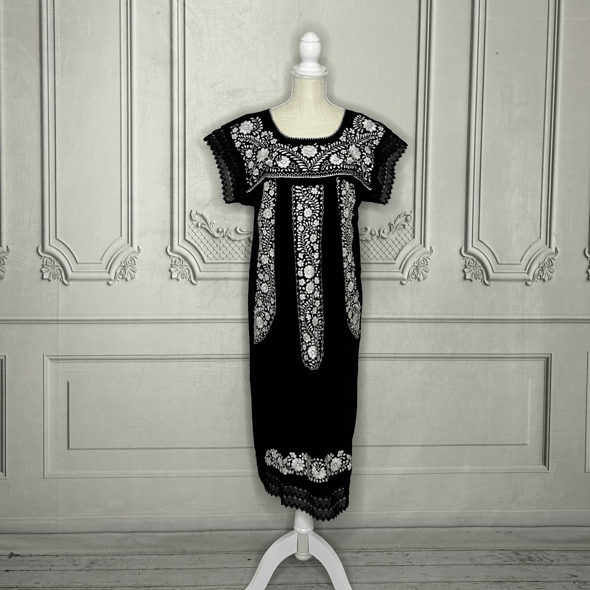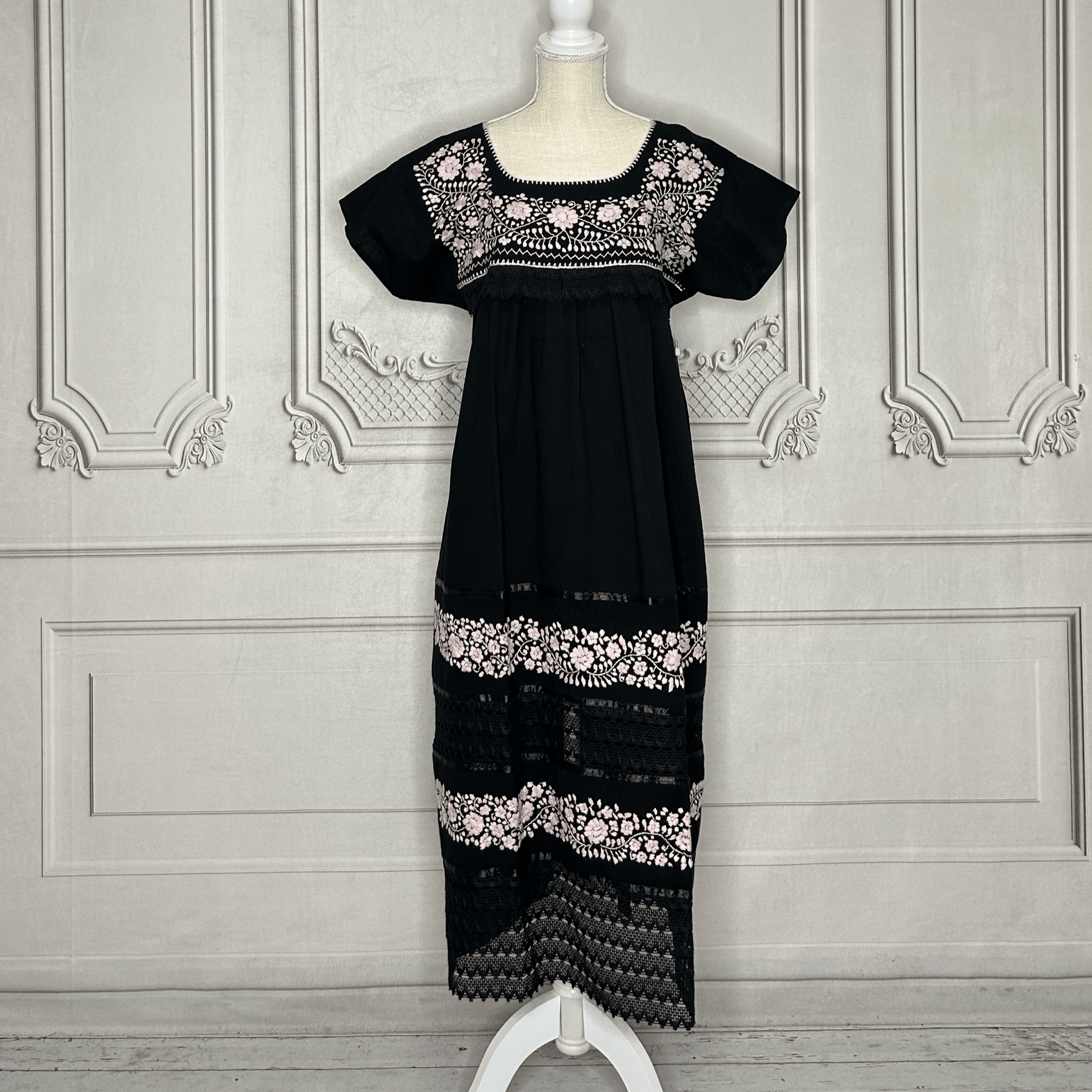 Laced Trim Mexican Dress - Puebla Black