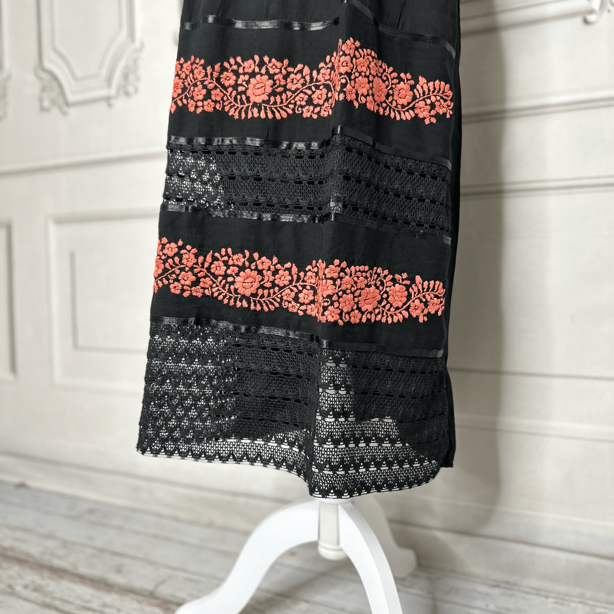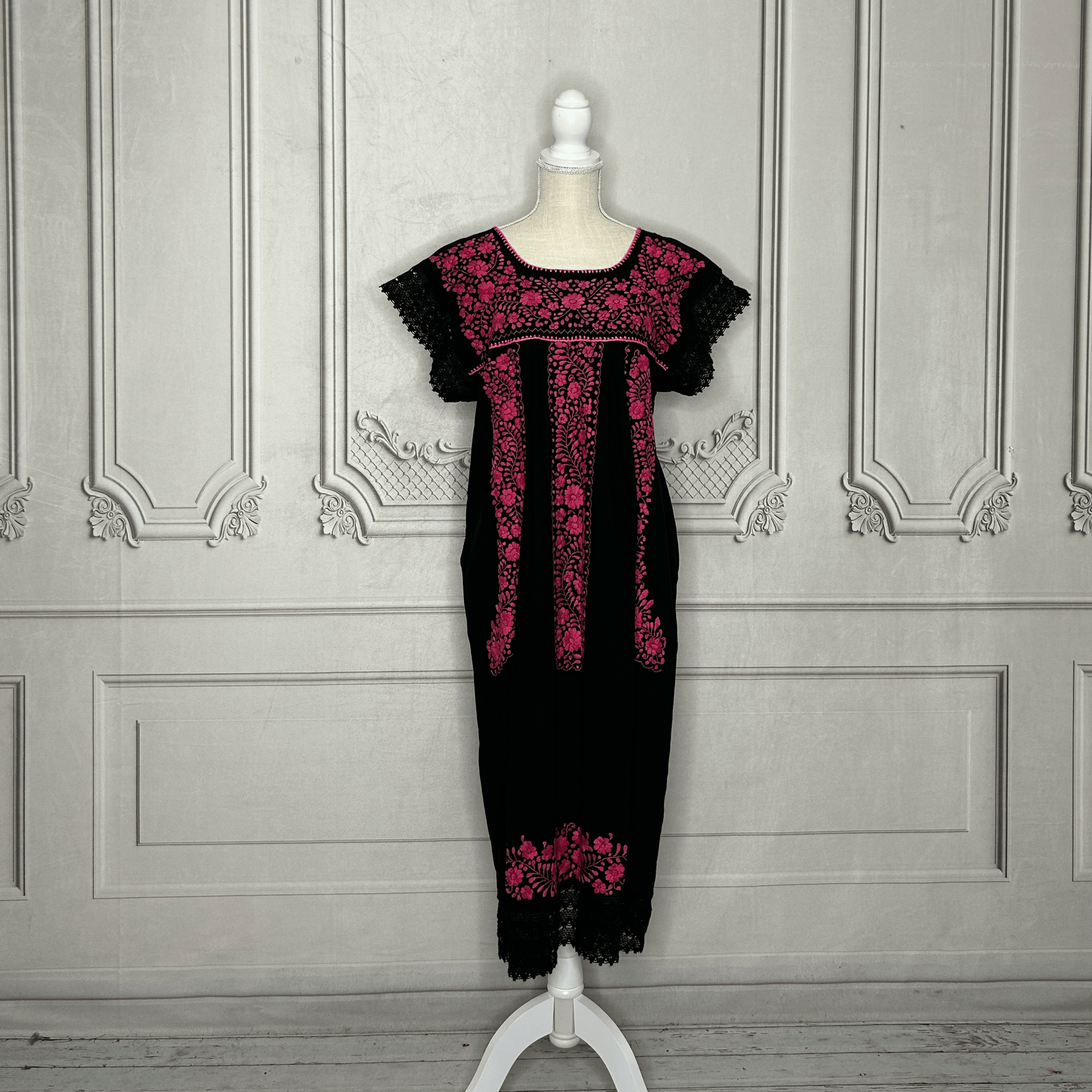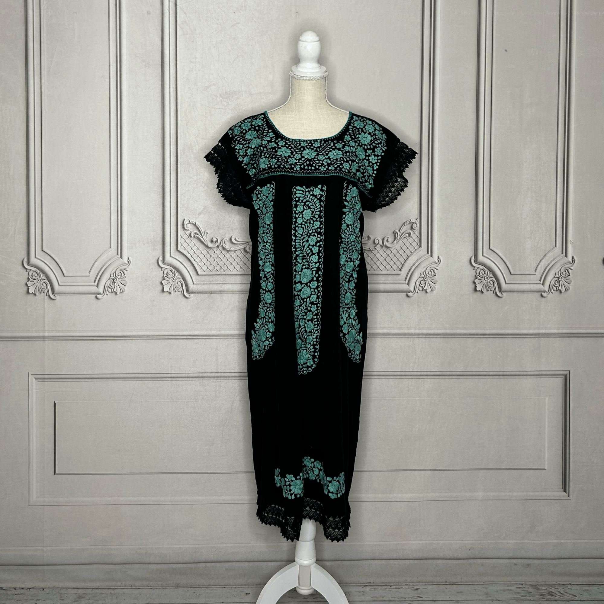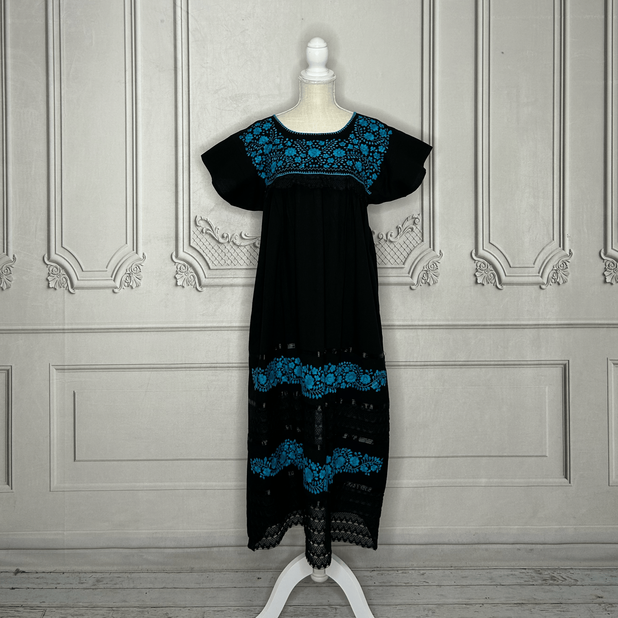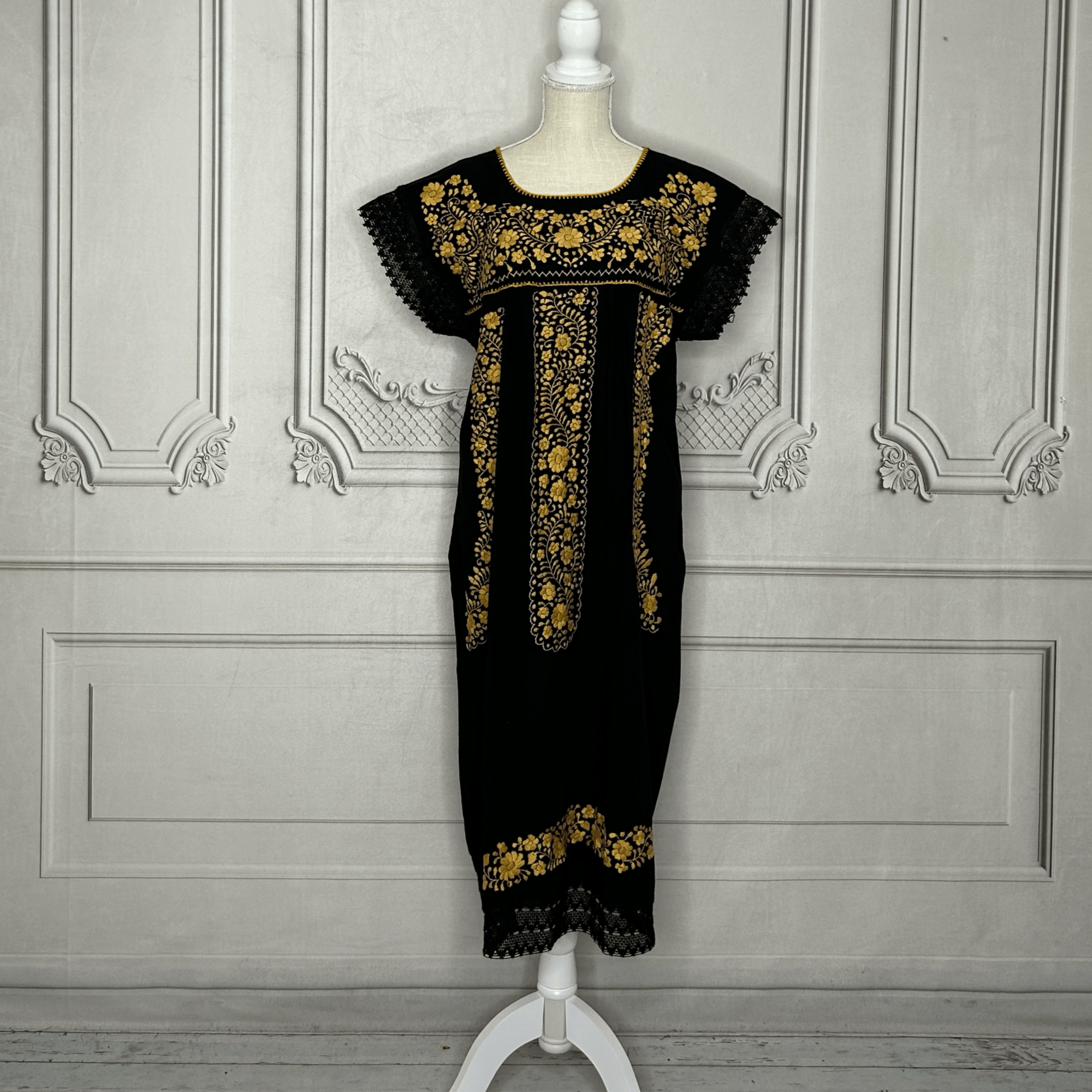 Laced Trim Mexican Dress - Puebla Black