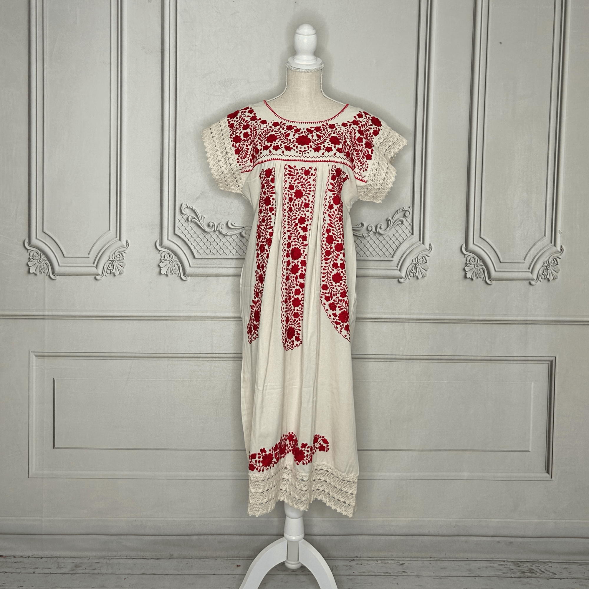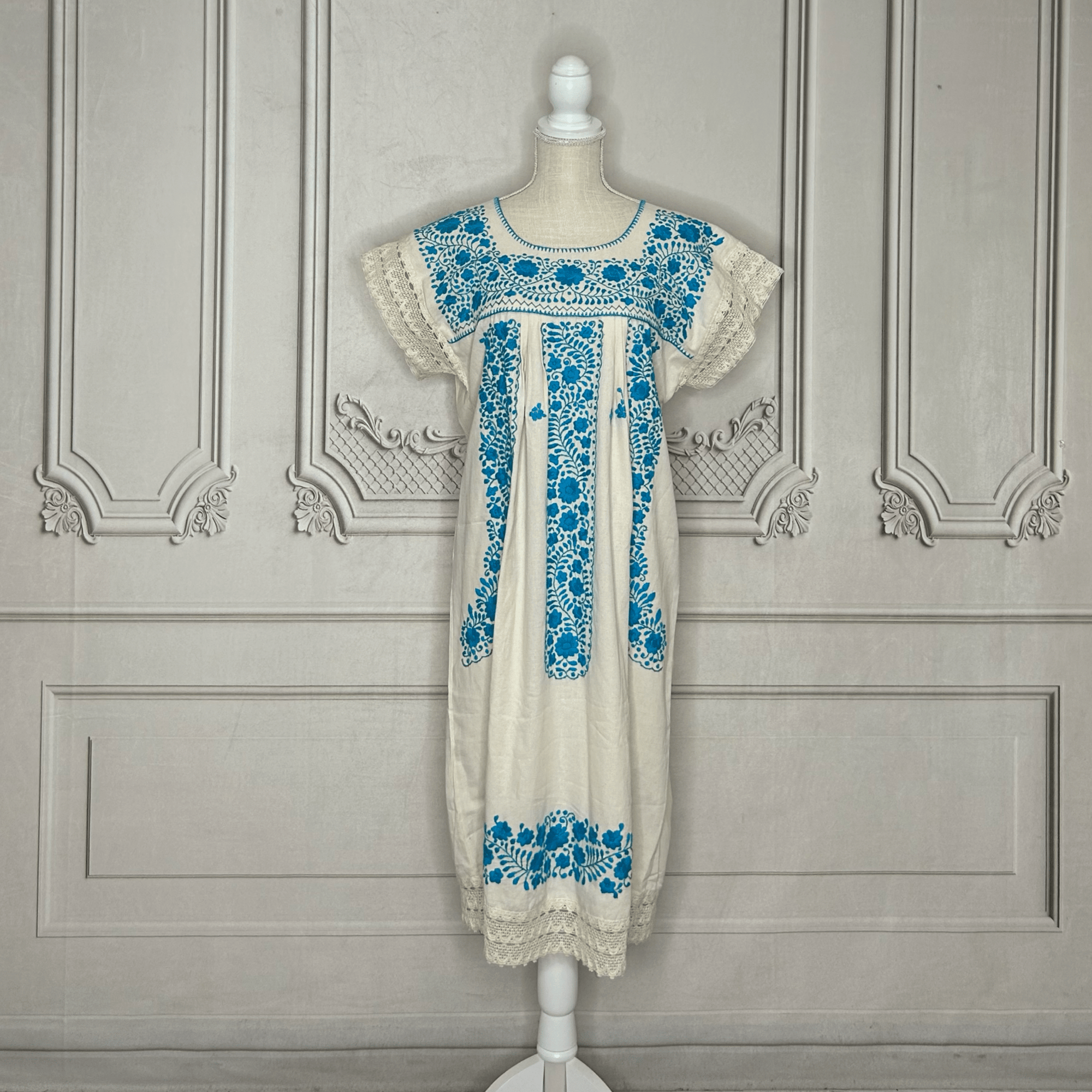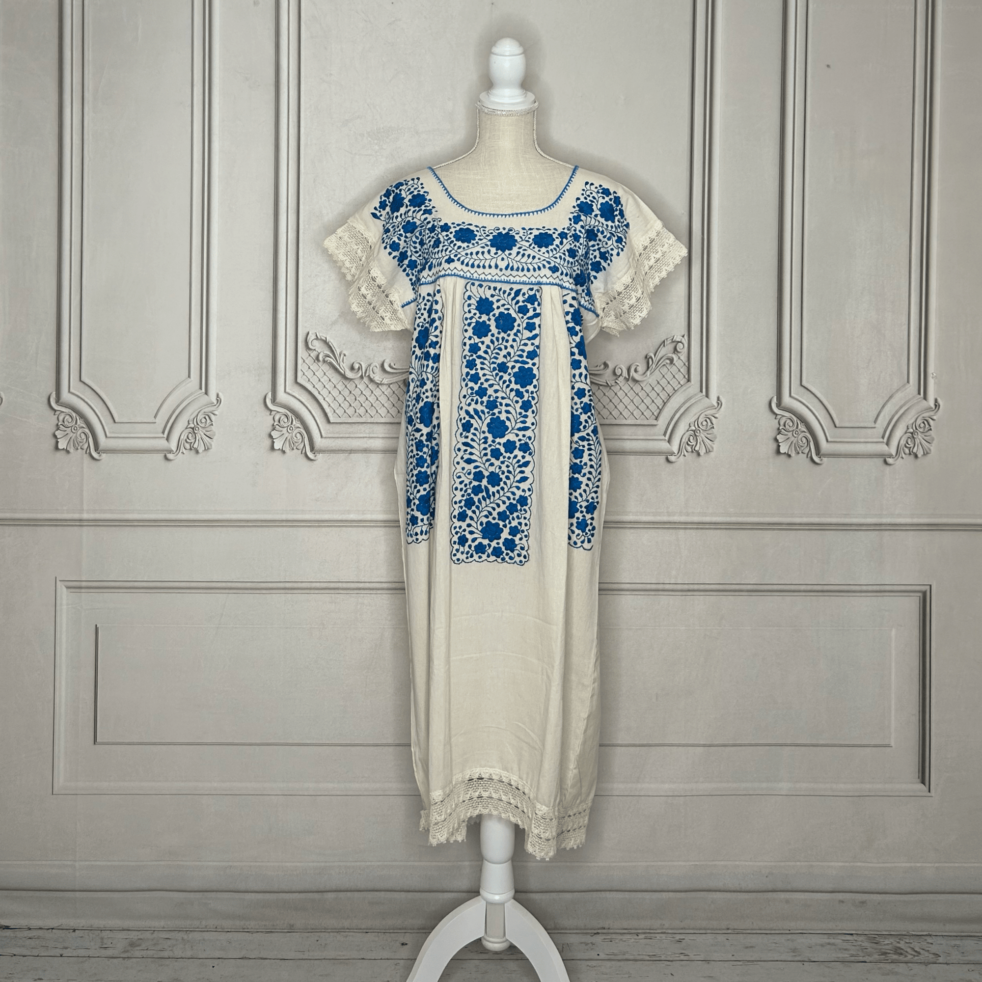 Laced Trim Mexican Midi Dress - Puebla Cream