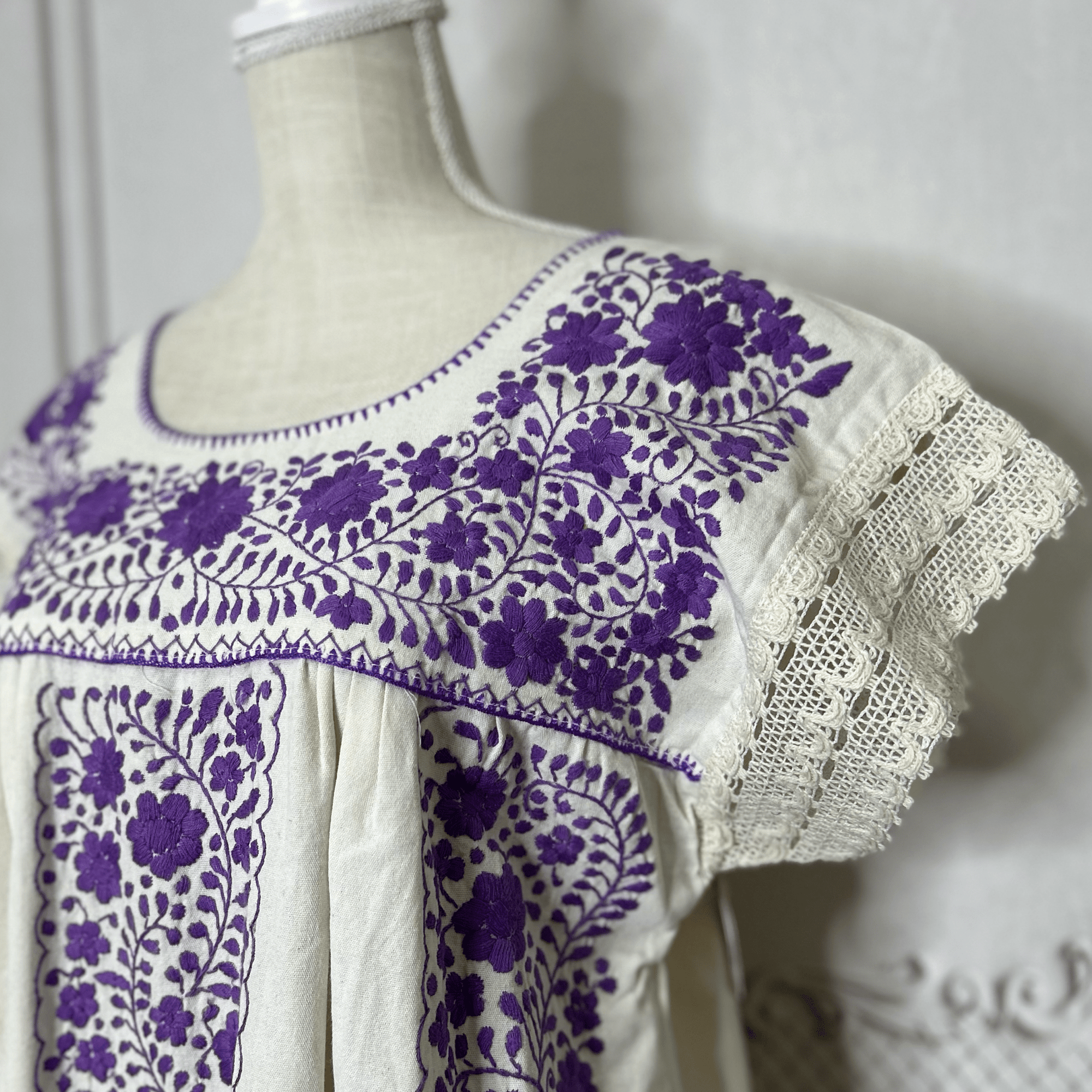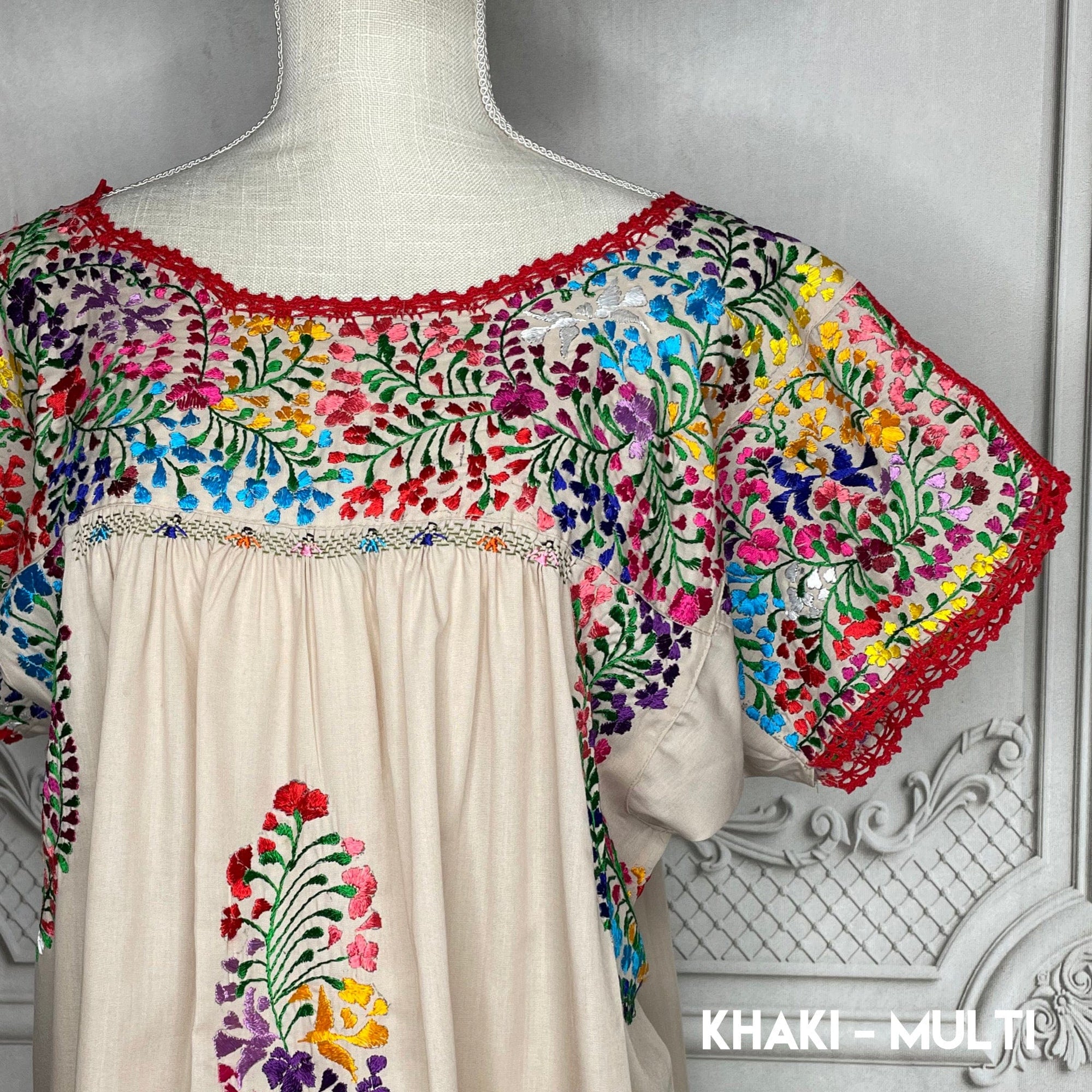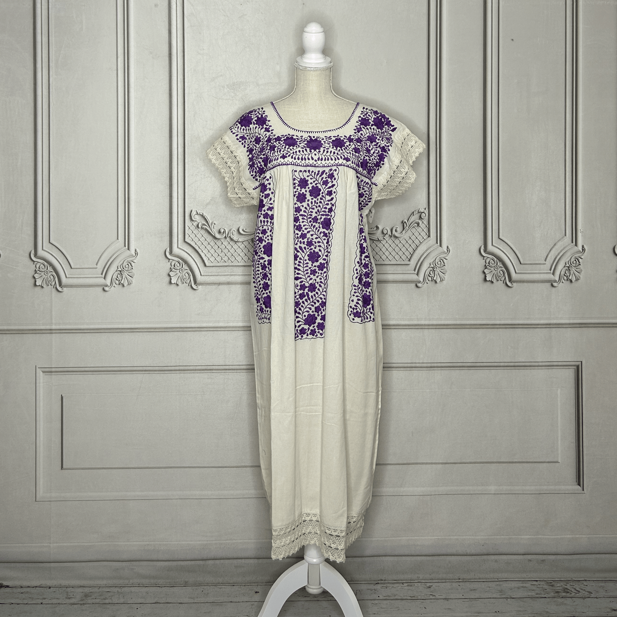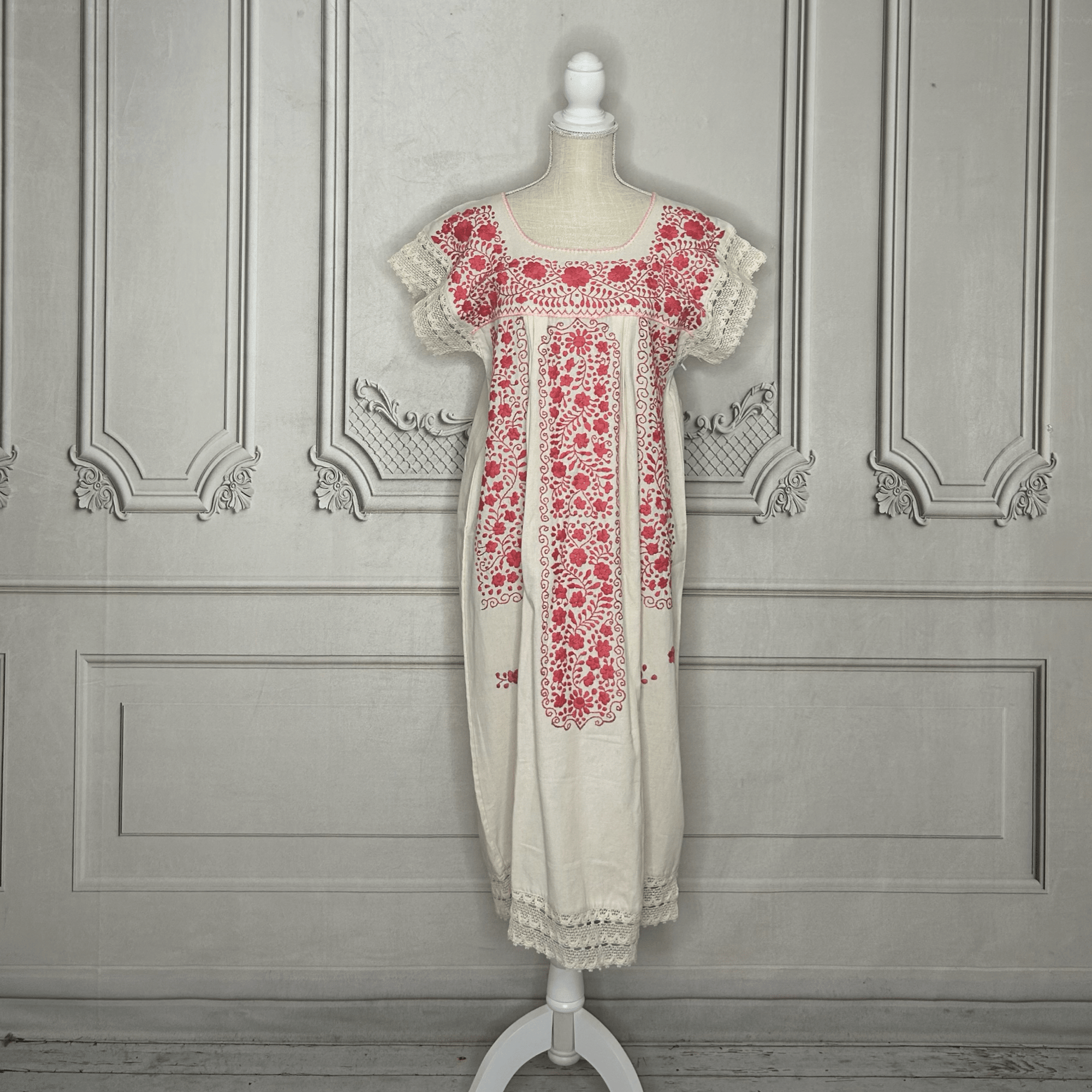 Laced Trim Mexican Midi Dress - Puebla Cream