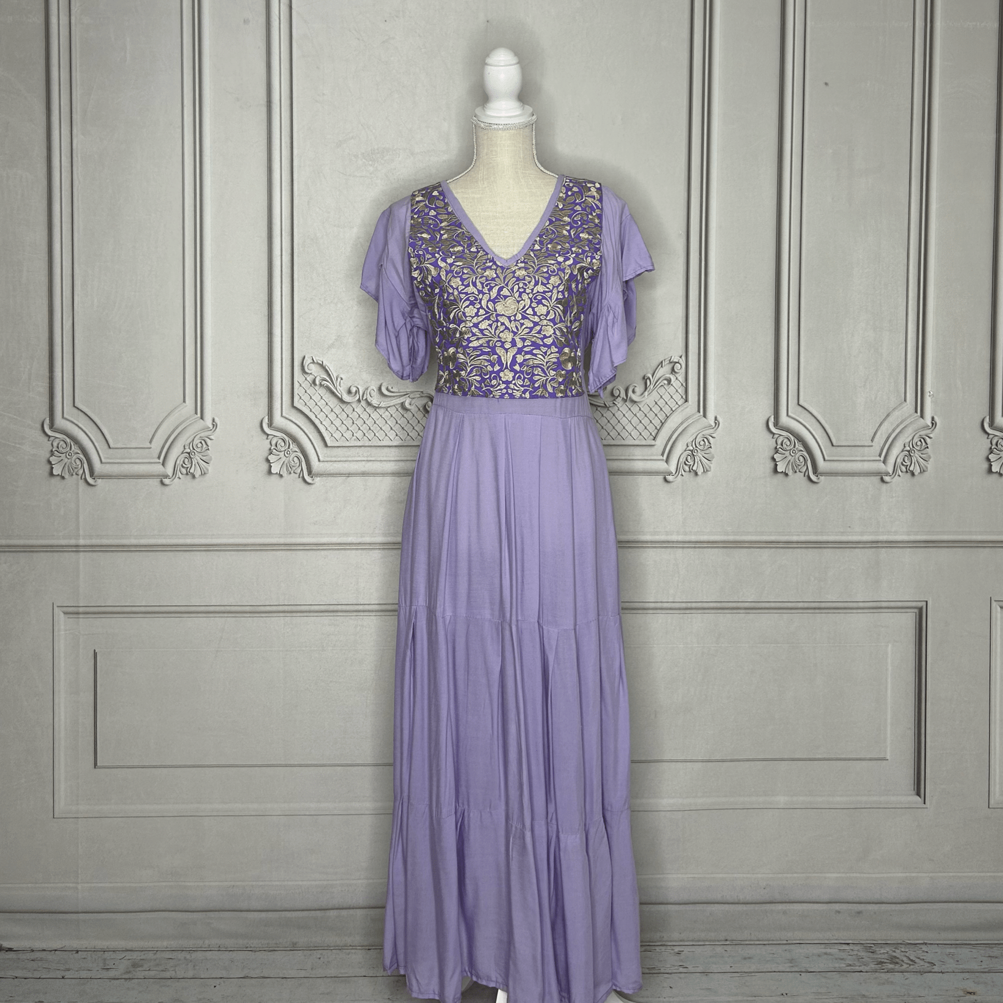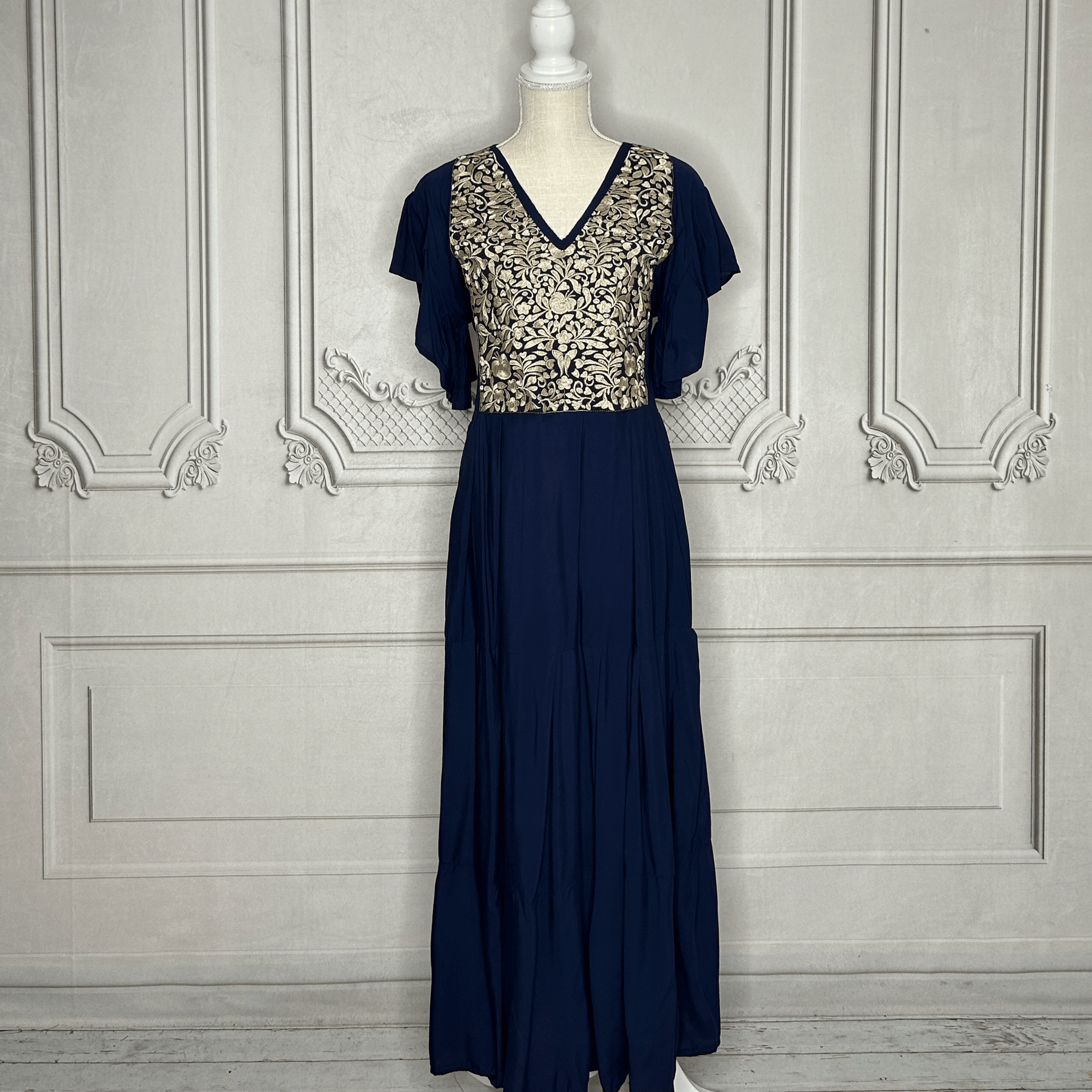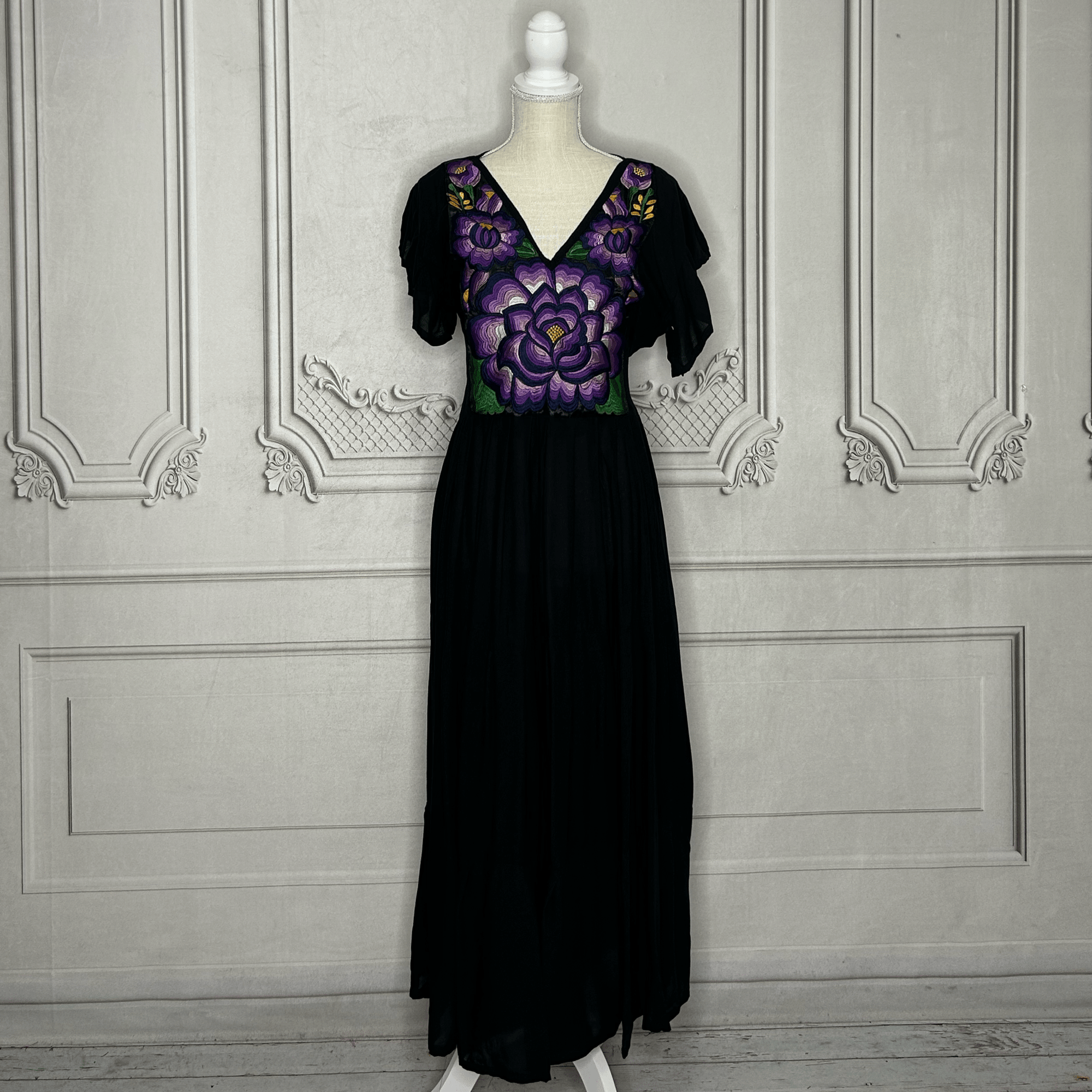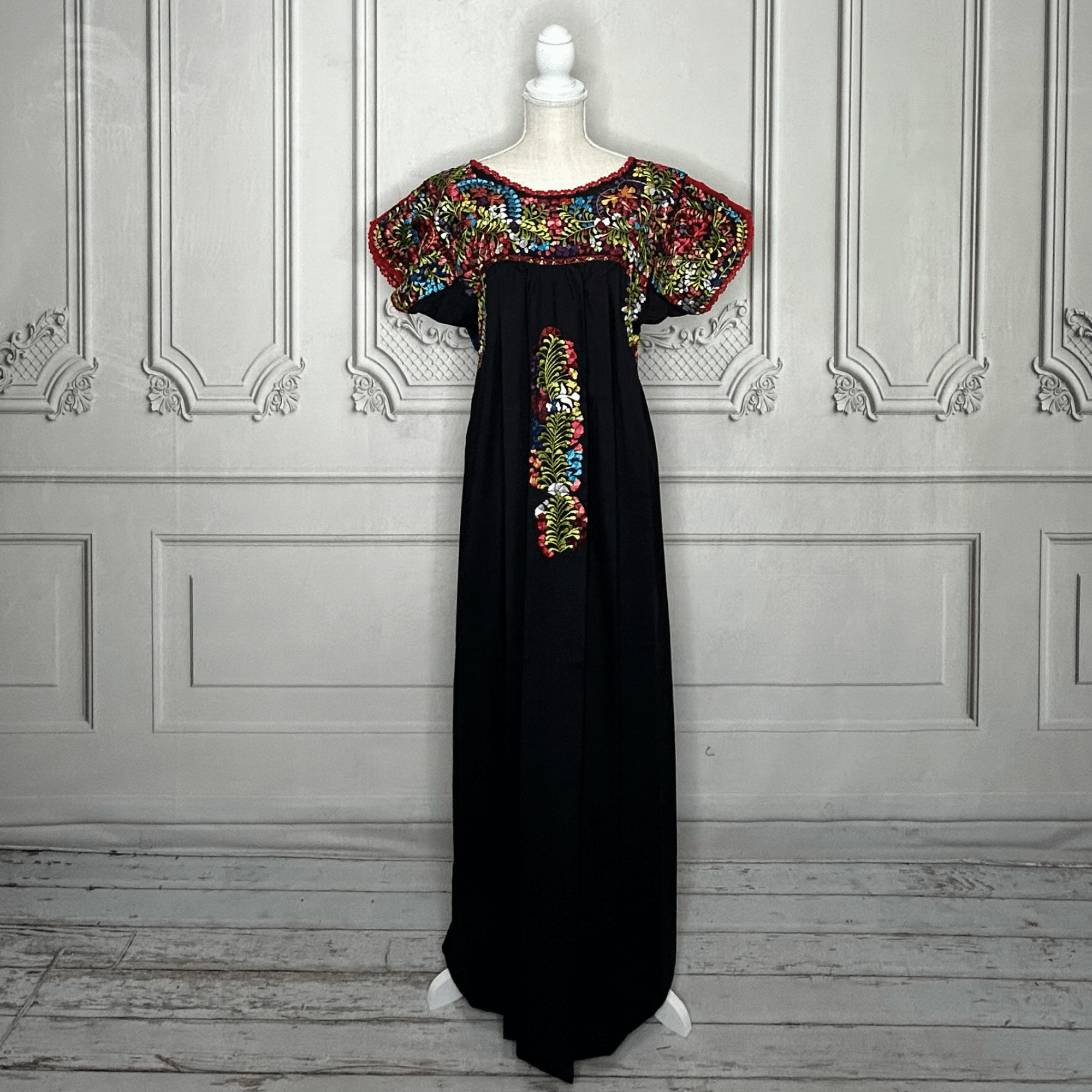 Mexican Embroidered Tiered Denim Maxi Dress - Rosie