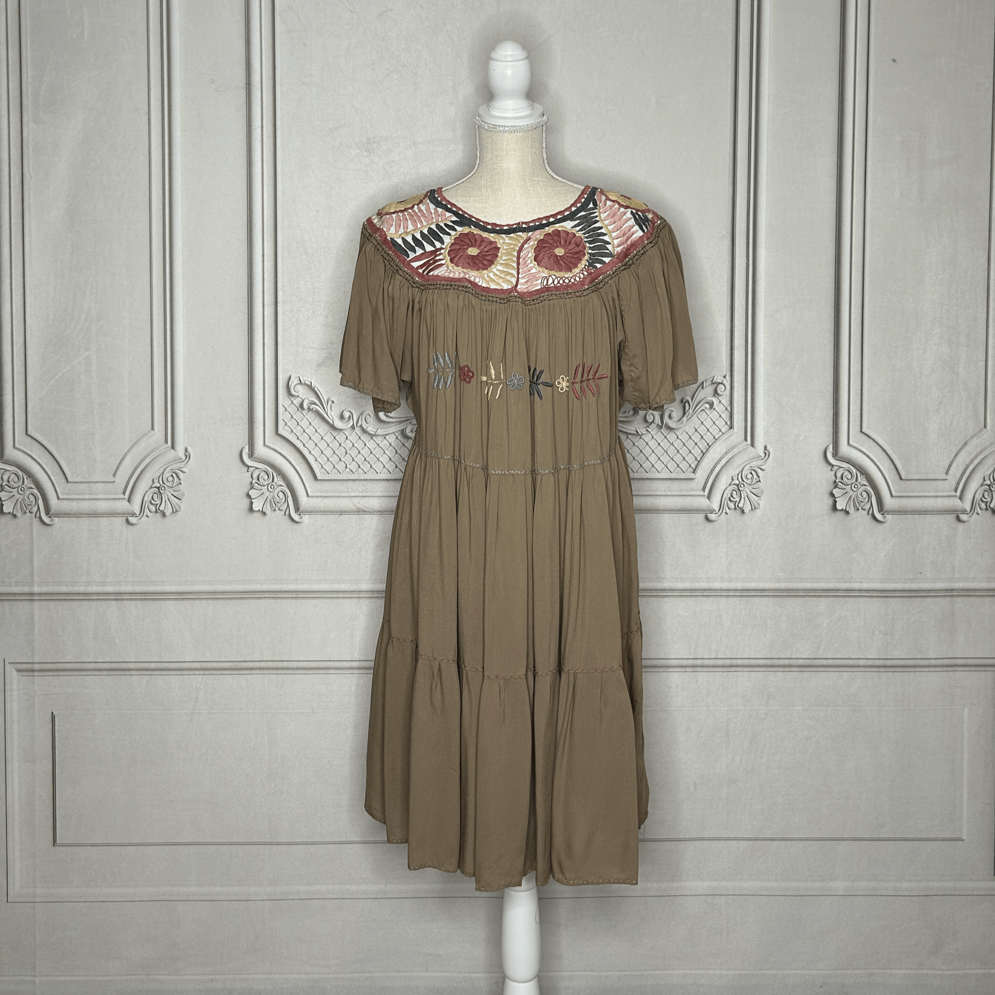 Oaxacan Butterfly Sleeve Tiered Midi Dress