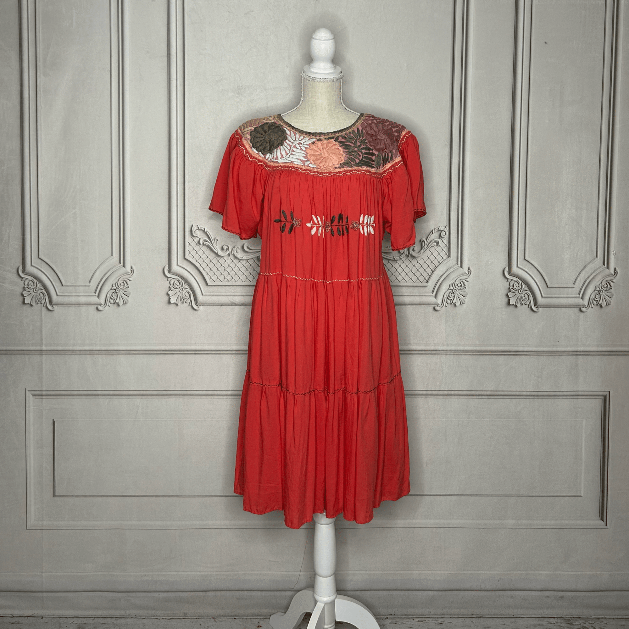 Mexican Embroidered Short Sleeve PLUS Size Dress - Jazmin