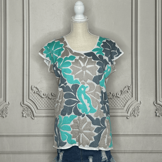 Butterfly Sleeve Tri -Color Mexican Blouse - VIVA MEXICO