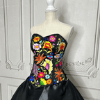 The beautiful evening gown is handmade and embroidered in fine silk thread. It is fully lined with tulle on a mermaid tail to give volume.