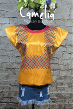 Cette blouse de Frida Kahlo est un incontournable de la région d'Istmo au Mexique. Fabriqué à la main et brodé en satin avec une sous-couche en coton dans un motif amusant à pois pour un meilleur confort.