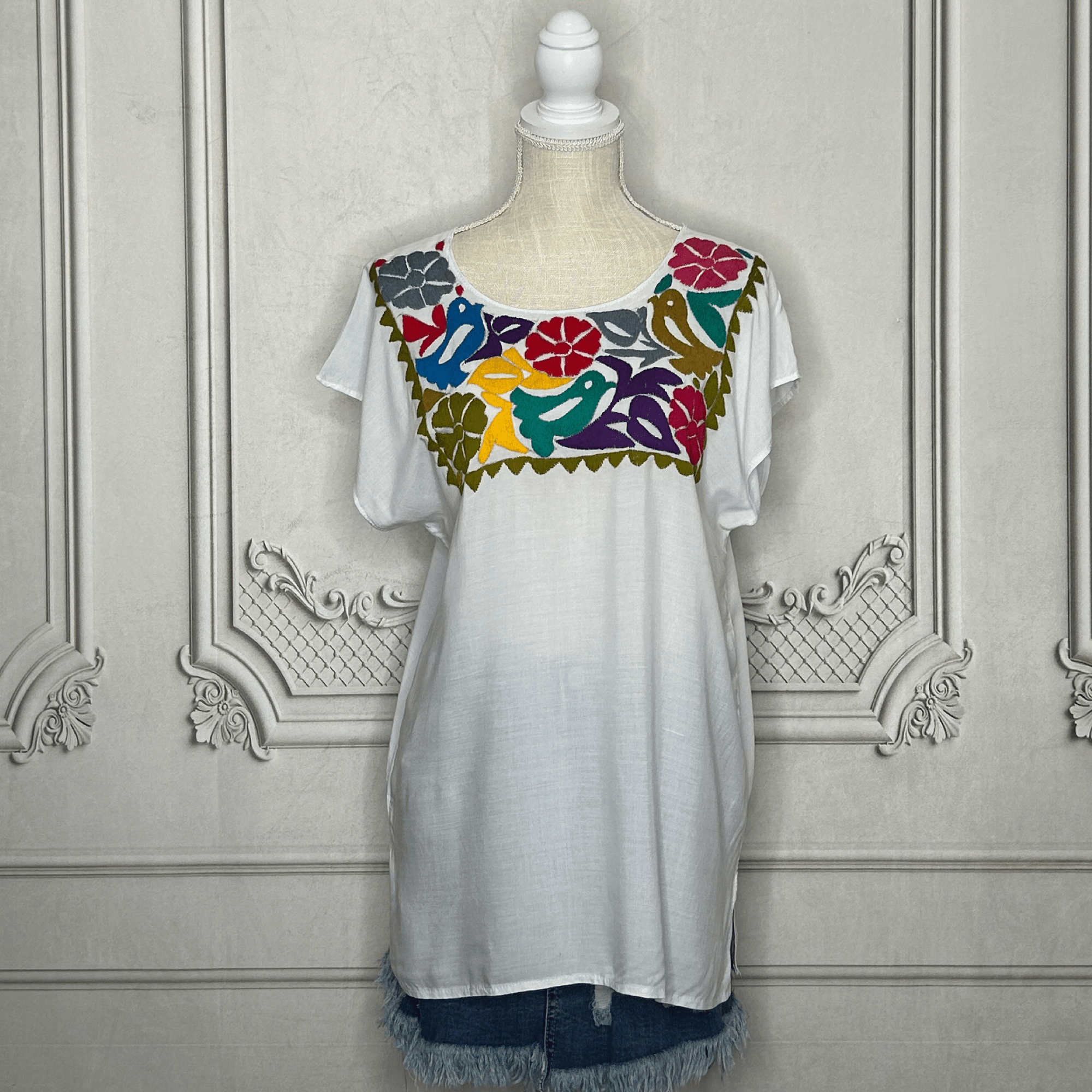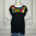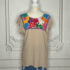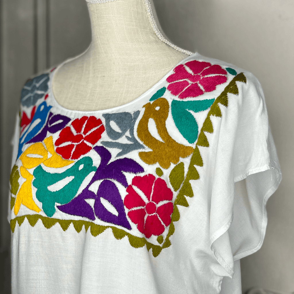 Le magnifique chemisier mexicain Jalapa est élégant à son meilleur. Inspiré du chemisier traditionnel Jalapa, notre haut simple sans manches offre un look simple et moderne tout en conservant le motif de broderie traditionnel Jalapa.