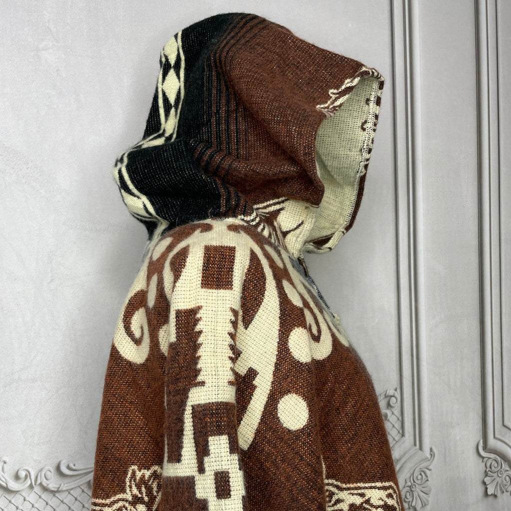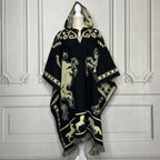 Poncho à capuche en laine d'alpaga mexicain - Cheval debout