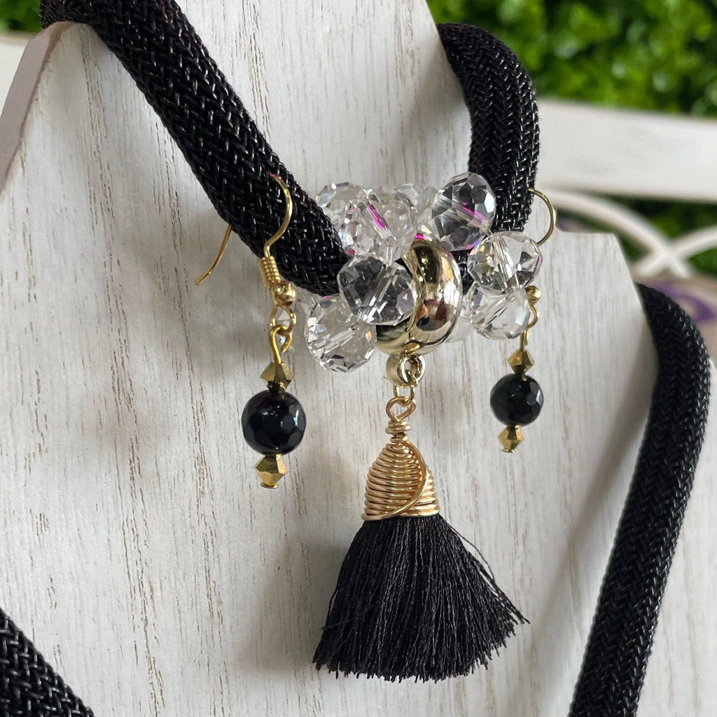 Comprend des boucles d'oreilles et un bracelet.