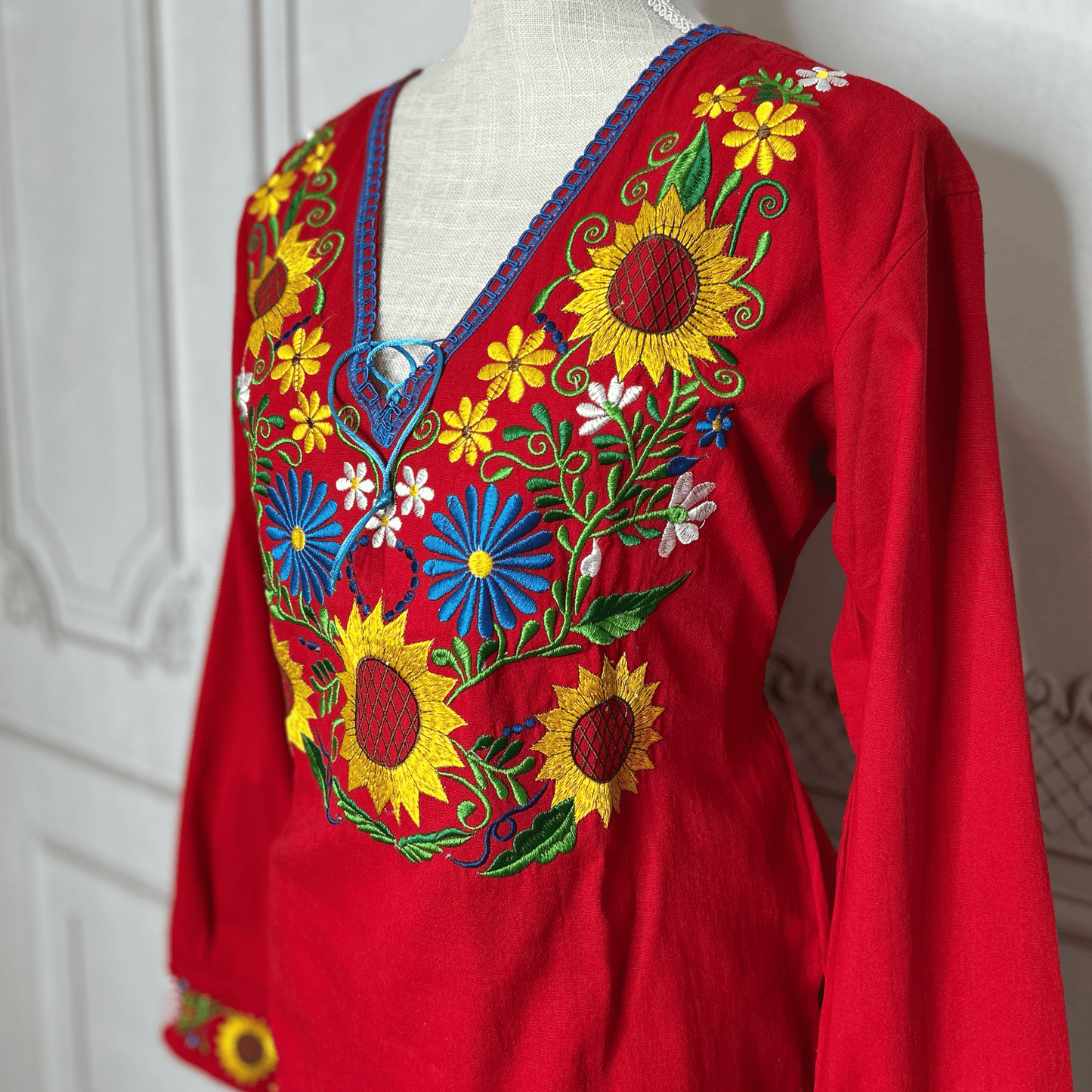 Mexican Embroidered Long Sleeve Sunflower Tunic