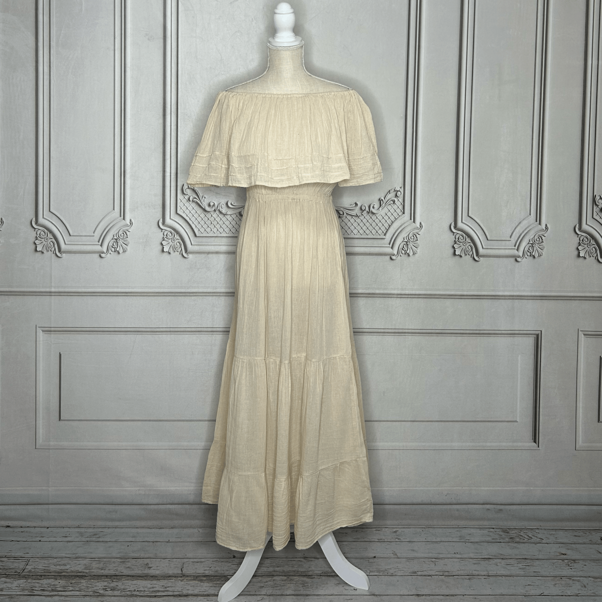 Robe longue en gaze à épaules dénudées