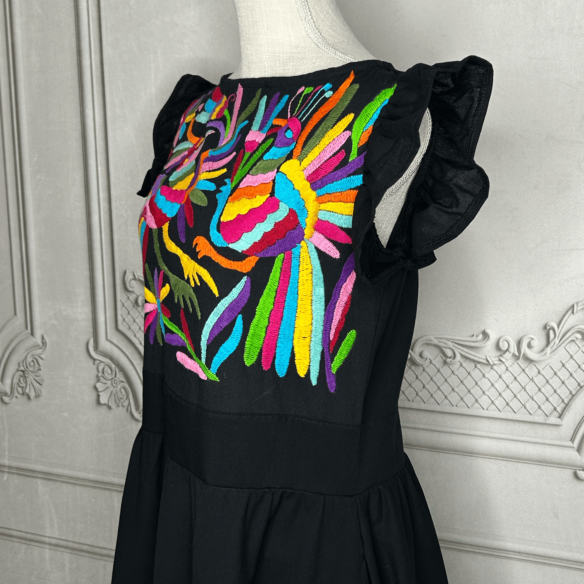 This Mexican Otomi Summer dress features adorable ruffled sleeves and side pockets. Hand-embroidered with high-quality cotton thread by skilled artisans from Hidalgo. Made from 100% raw cotton (muslin) fabric, each dress is genuinely one-of-a-kind.