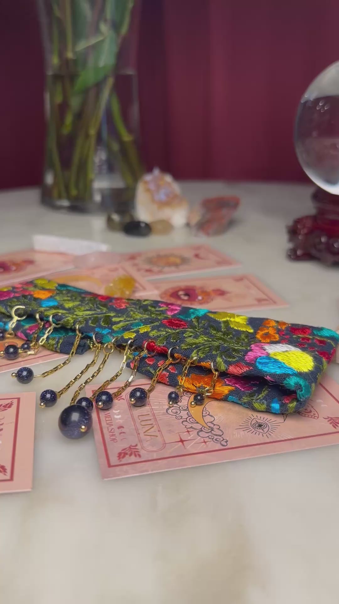 Handle with love. Avoid water, perfumes, and lotions. Store flat or hanging in a dry place to protect the embroidery and crystals. Due to the handmade nature, gentle wear is recommended.