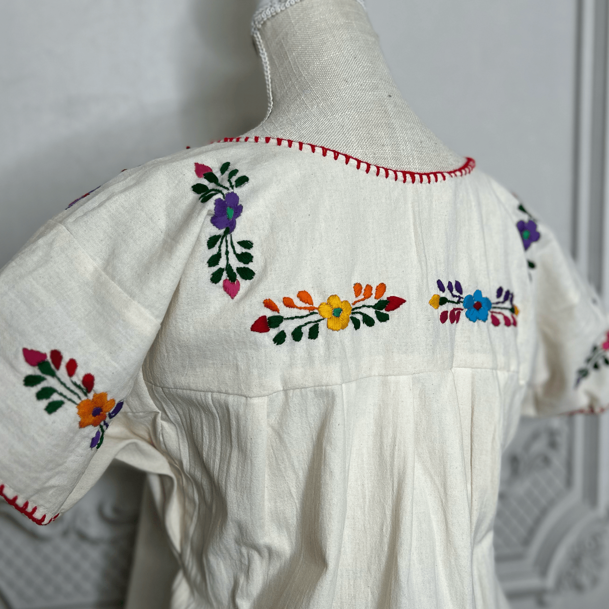 Crafted with meticulous attention to detail, the San Antonio Blouse showcases the traditional techniques of Oaxacan artisans. Each piece is hand-embroidered with cotton thread on high-quality soft denim-like cotton fabric, resulting in a truly unique and luxurious garment.