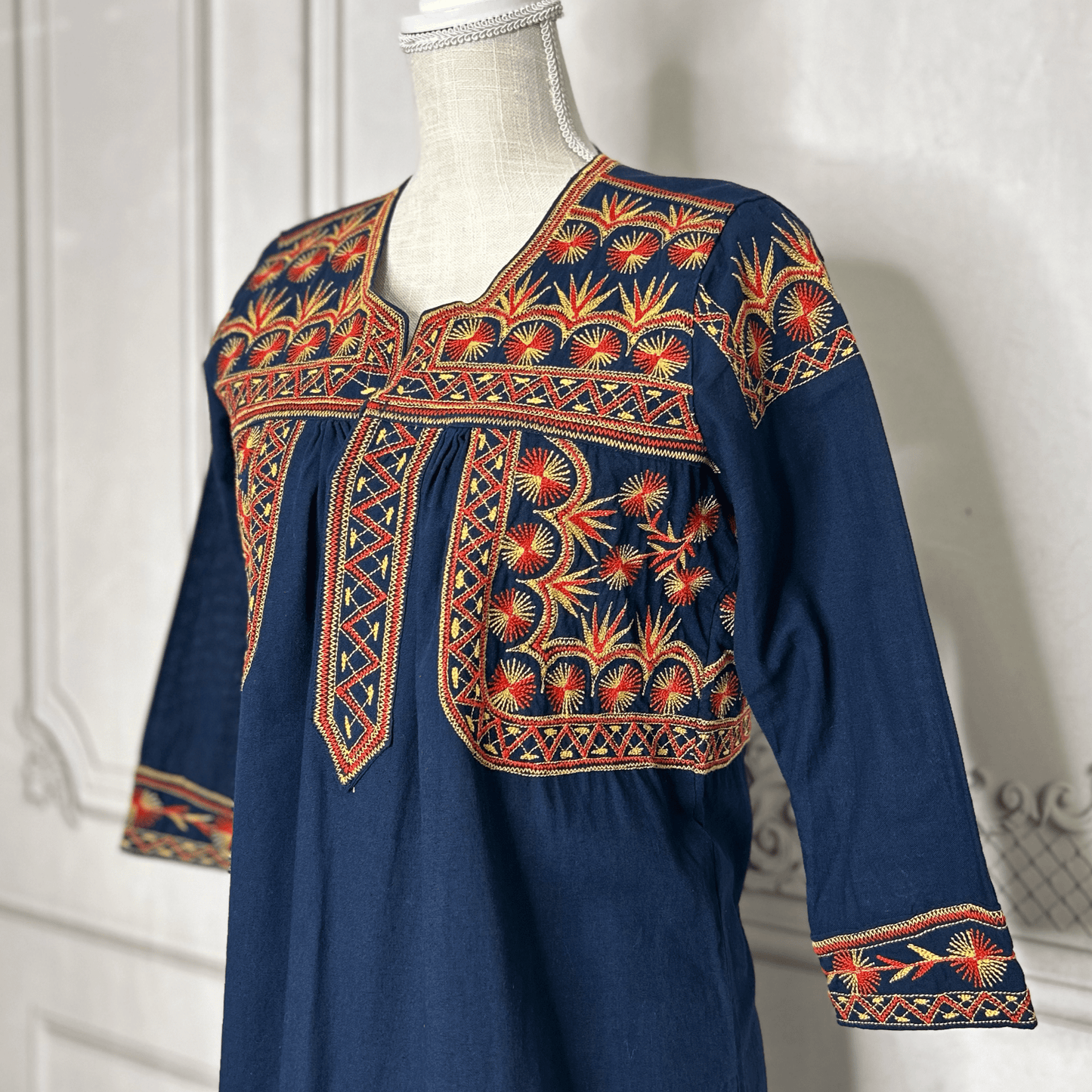 Veuillez nous contacter si l'article est en rupture de stock pour vérifier la disponibilité et les délais de livraison des artisans. Veuillez noter qu’il n’y a pas deux articles brodés exactement de la même manière. Les motifs de couleurs brodés sur les images ne peuvent pas être dupliqués. Il y aura toujours des variations de couleur et de design. Certains styles peuvent être disponibles en tailles 2XL et 3XL. Veuillez nous envoyer un message pour confirmer. Nous travaillons directement avec des artisans et les délais varient en fonction du style.