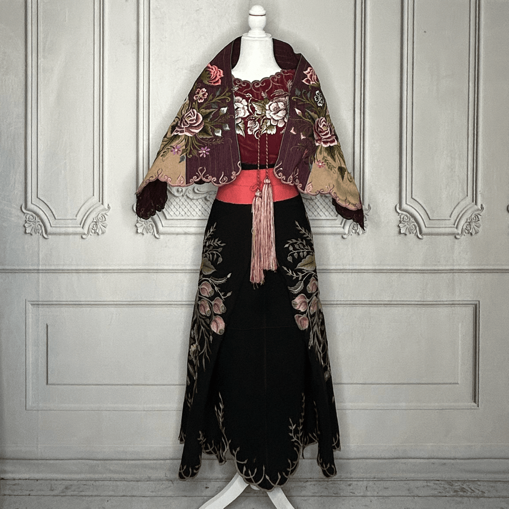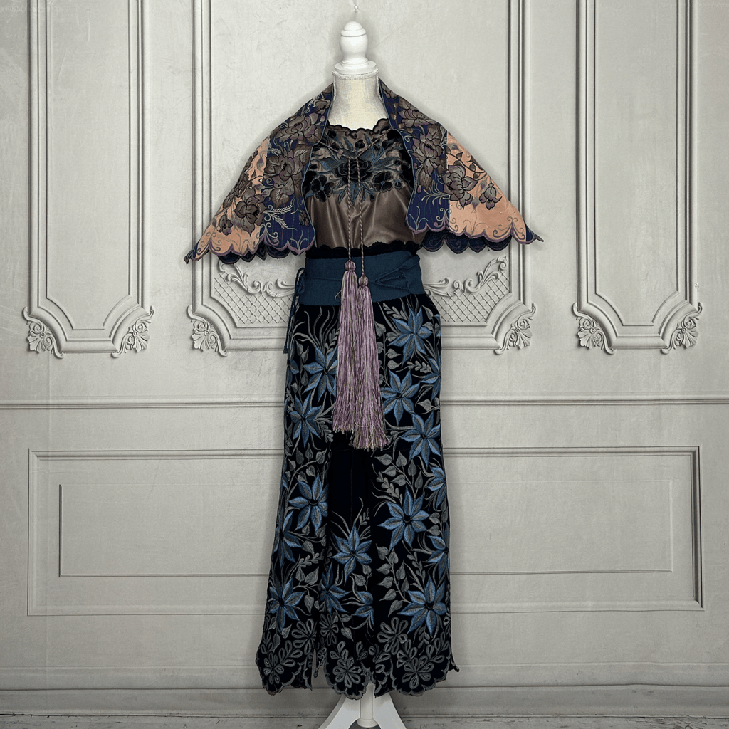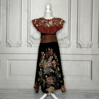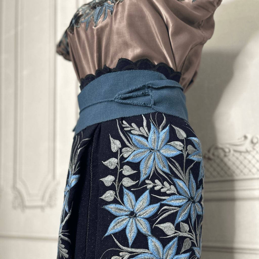 Description:-La jupe est un refajo qui s'enroule autour de la taille et est retenu par une ceinture