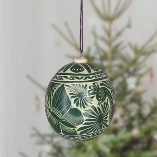 Jícara Natural Hand-Carved Christmas Ornament GREEN