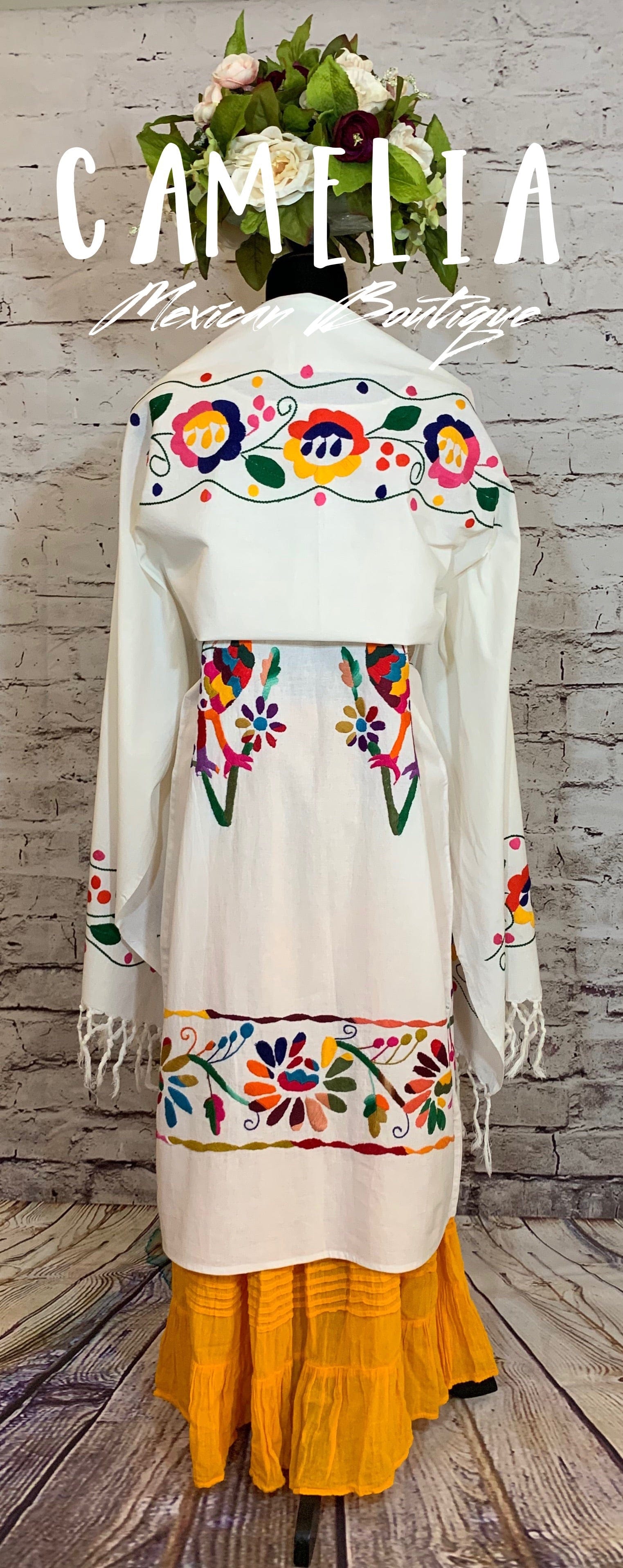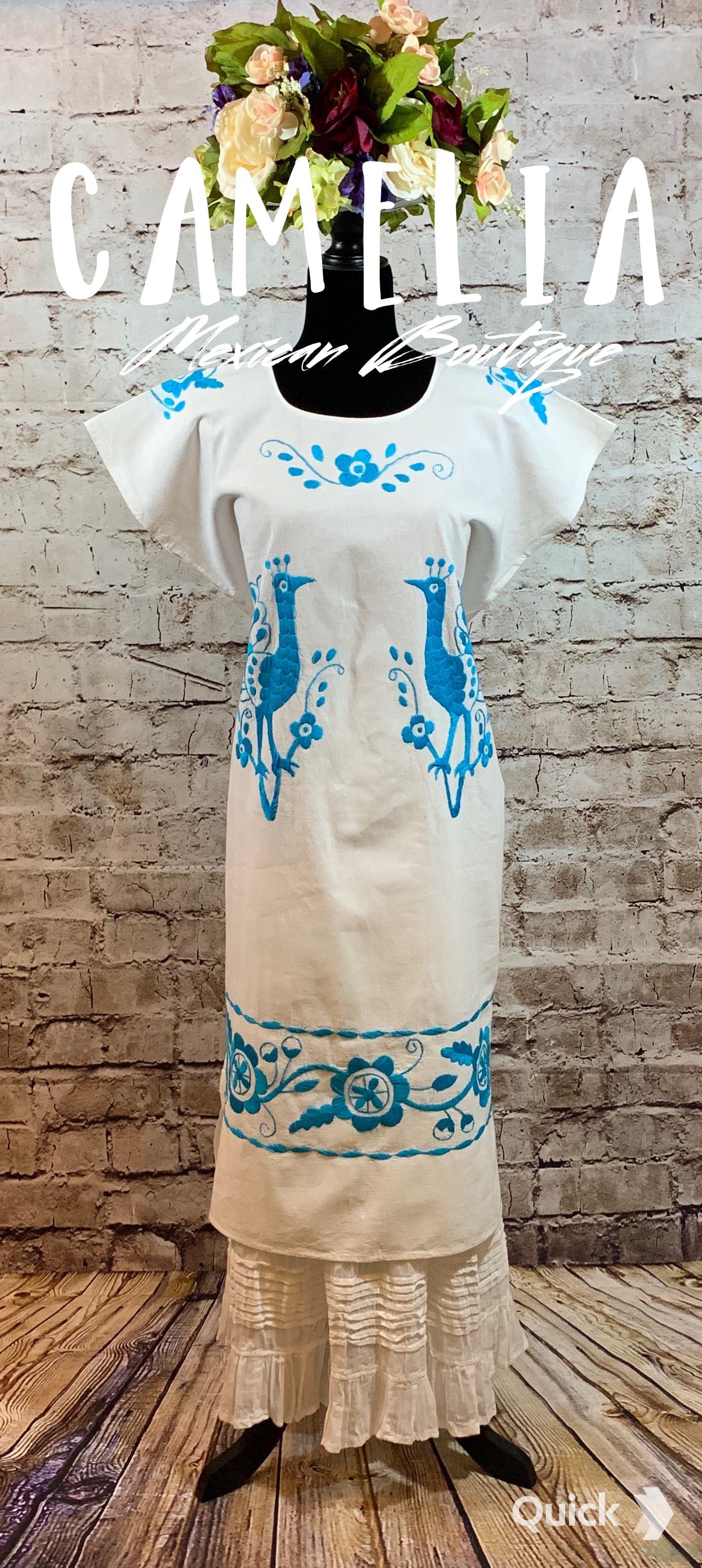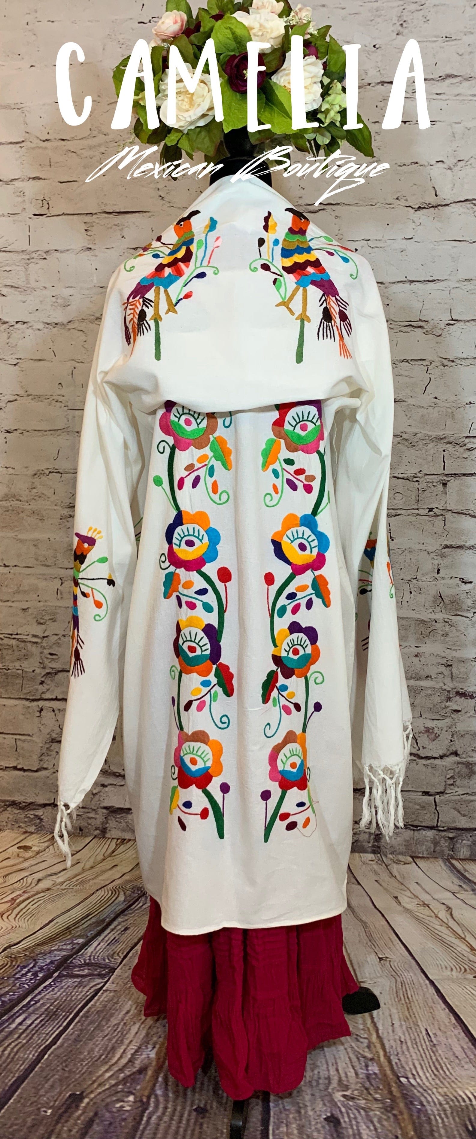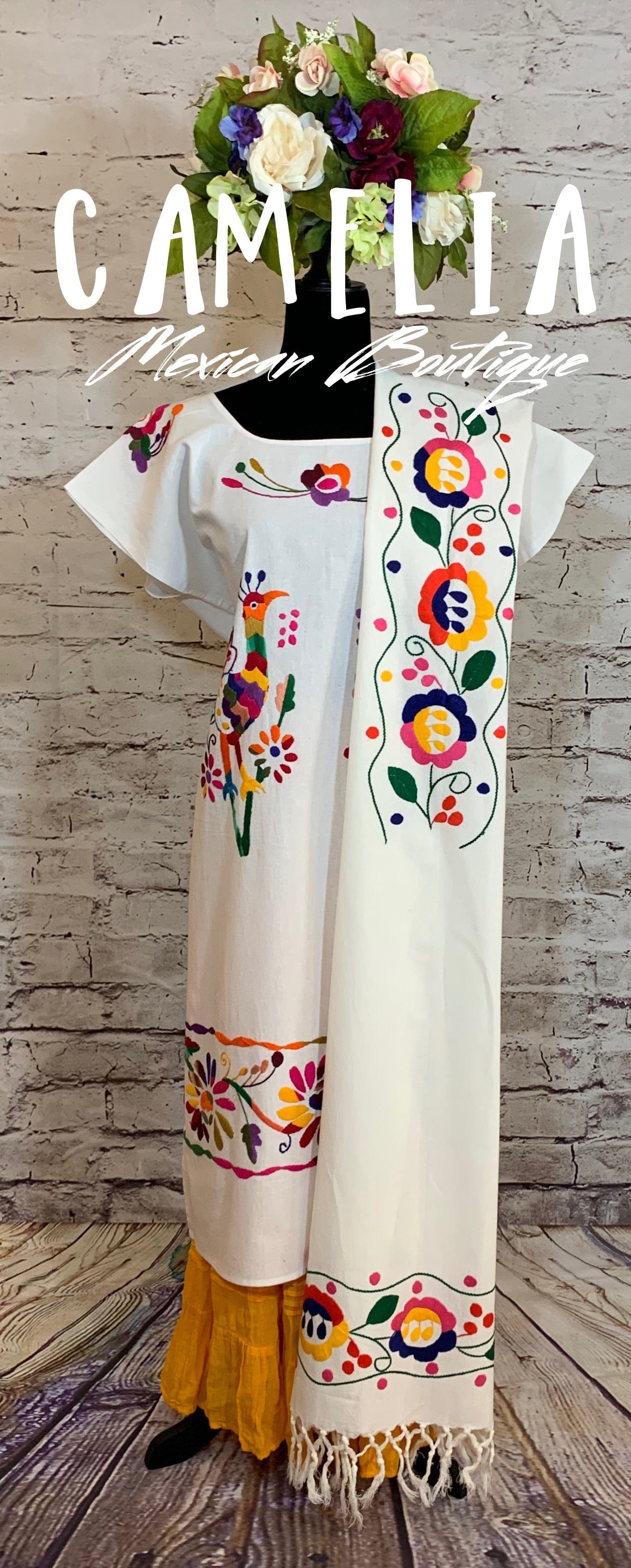 Handcrafted from raw cotton (manta), the Paradise Huipil Dress features a delicate bird motif expertly embroidered with fine thread. Purchase the coordinating embroidered shawl or pair with a silk shawl for a versatile look. To add extra length, pair with a gauze skirt (sold separately).