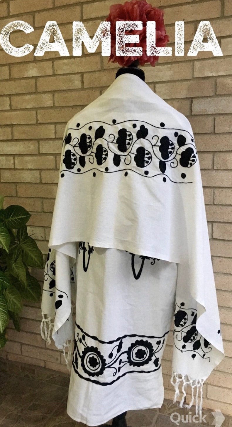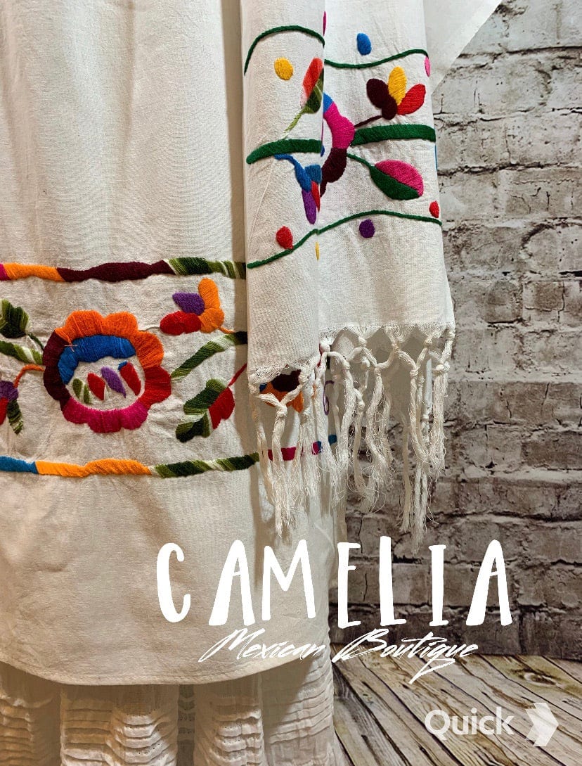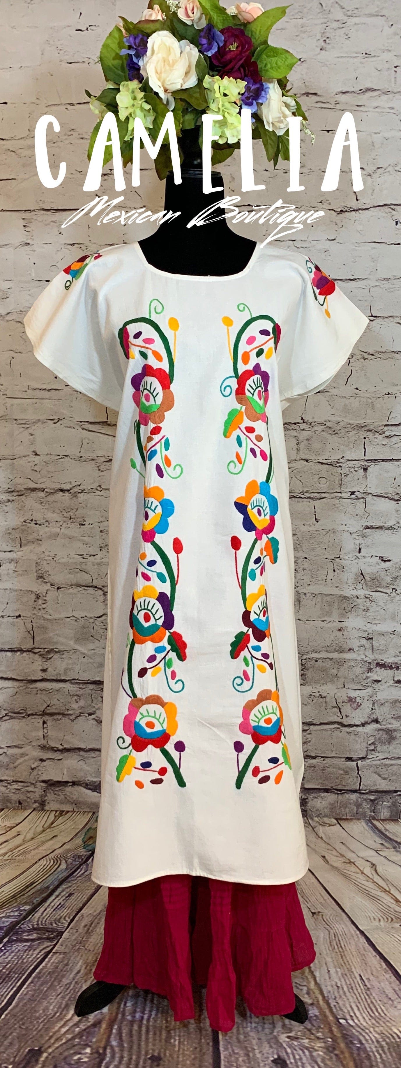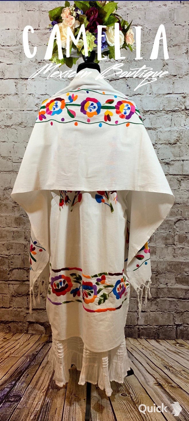 Handcrafted from raw cotton (manta), the Paradise Huipil Dress features a delicate bird motif expertly embroidered with fine thread. Purchase the coordinating embroidered shawl or pair with a silk shawl for a versatile look. To add extra length, pair with a gauze skirt (sold separately).