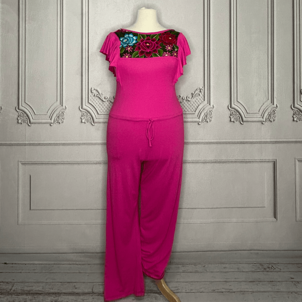 Mexican Embroidered Butterfly Sleeve Jumpsuit