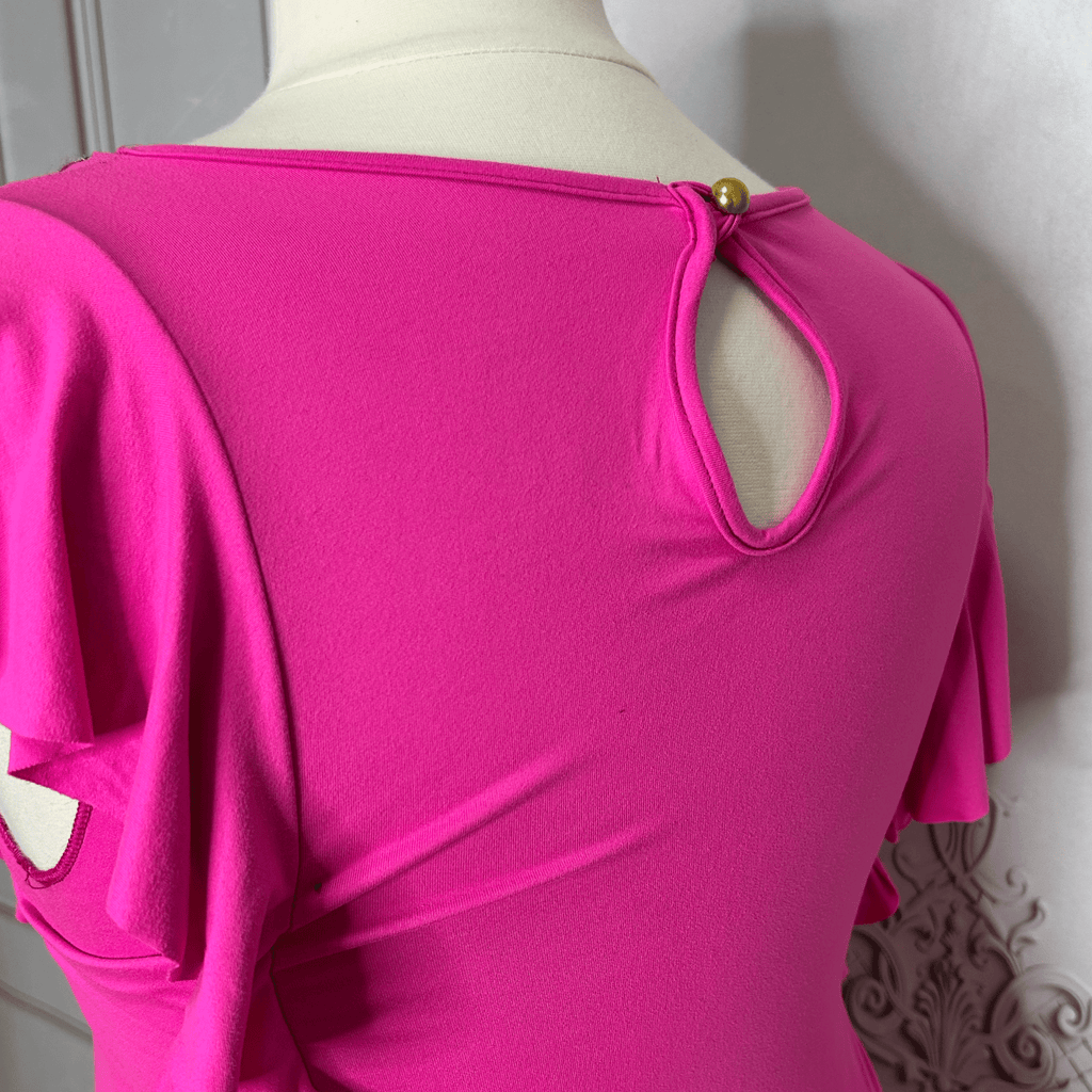 This jersey stretch jumpsuit is both comfortable and stylish. It features a butterfly sleeve with embroidered flowers, perfect for hot summer days or travel, and a straight-leg cut.