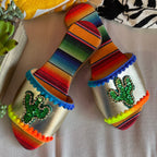 The perfect slip-on sandal for summer with cute pom-pom details and sequence cactus. Anti-slid fabric on the insole prevents the foot from sliding as well as an anti-slid rubber sole.