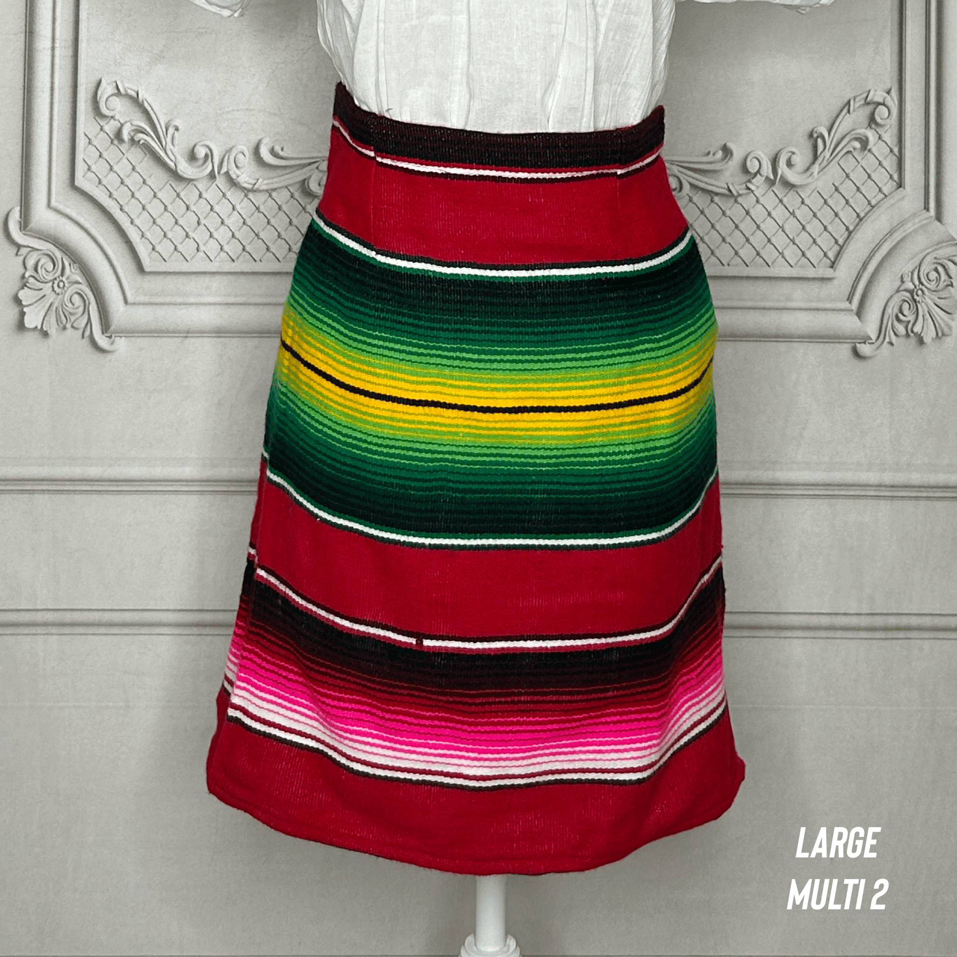Mexican Sarape Skirt made with authentic handwoven sarape fabric, 100% Cotton. Unlined and hand made with side zipper and elastic back waist for a better fit.