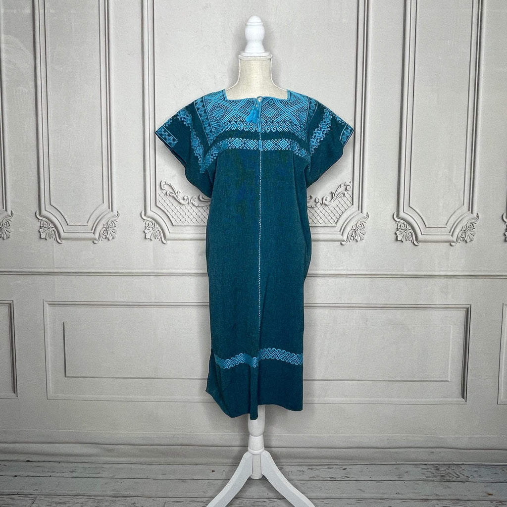 This San Andres Huipil Dress - Midi is a work of art, carefully handcrafted by the indigenous Tzotzil community of Los Altos Chiapas. Each piece is adorned with intricately embroidered neck and sleeves, carefully attached to the hand-loomed fabric. This dress is thick and durable and made with 100% cotton Telar fabric. Its versatility allows it to be worn alone or paired with a gauze skirt for a stunning look, as seen in the images. Skirts are available for purchase separately.