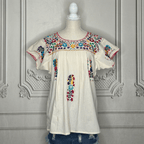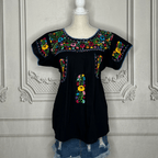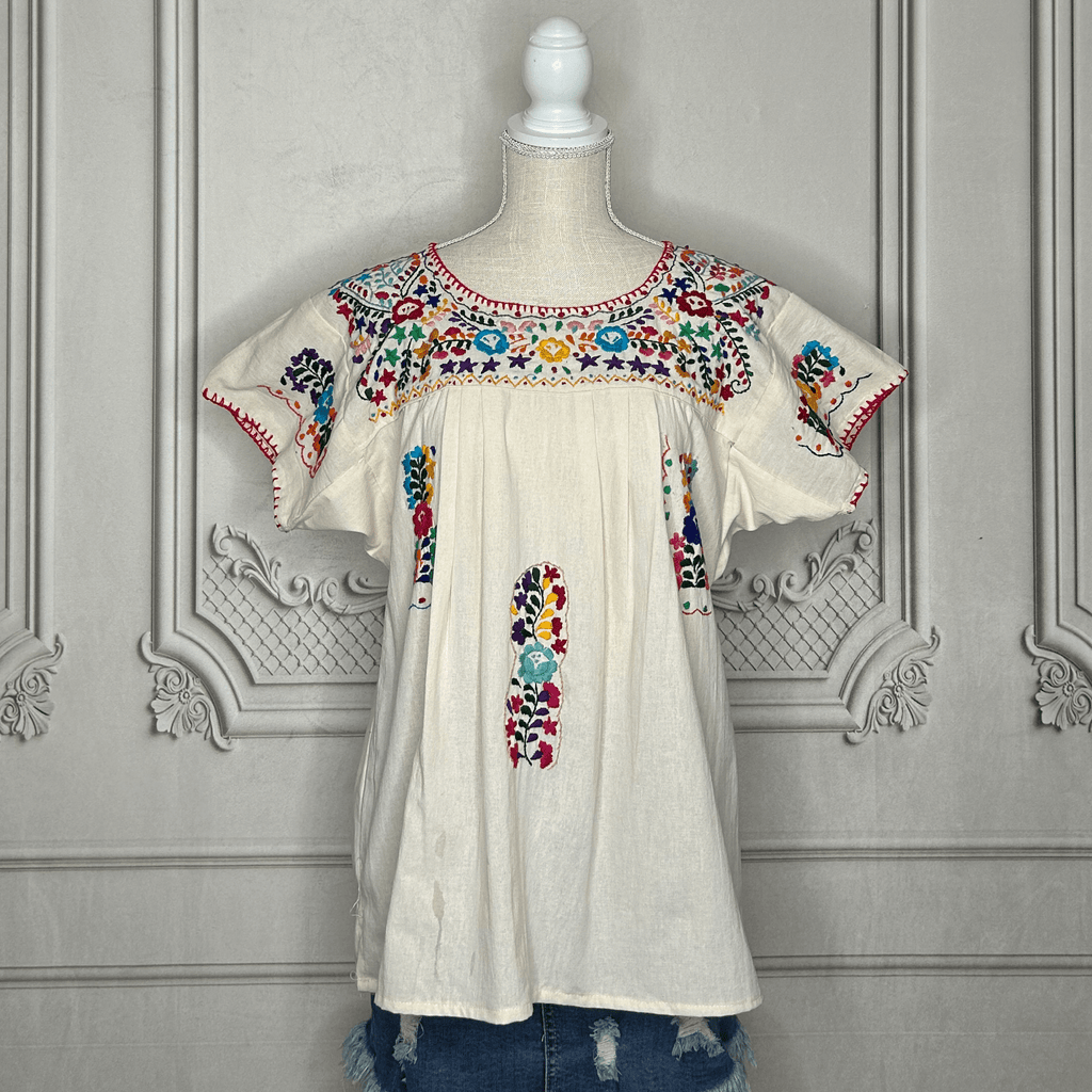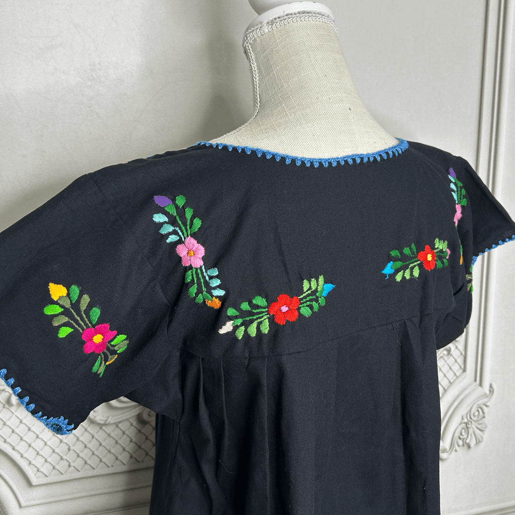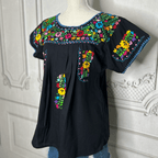 Crafted with meticulous attention to detail, the San Antonio Blouse showcases the traditional techniques of Oaxacan artisans. Each piece is hand-embroidered with cotton thread on high-quality soft denim-like cotton fabric, resulting in a truly unique and luxurious garment.