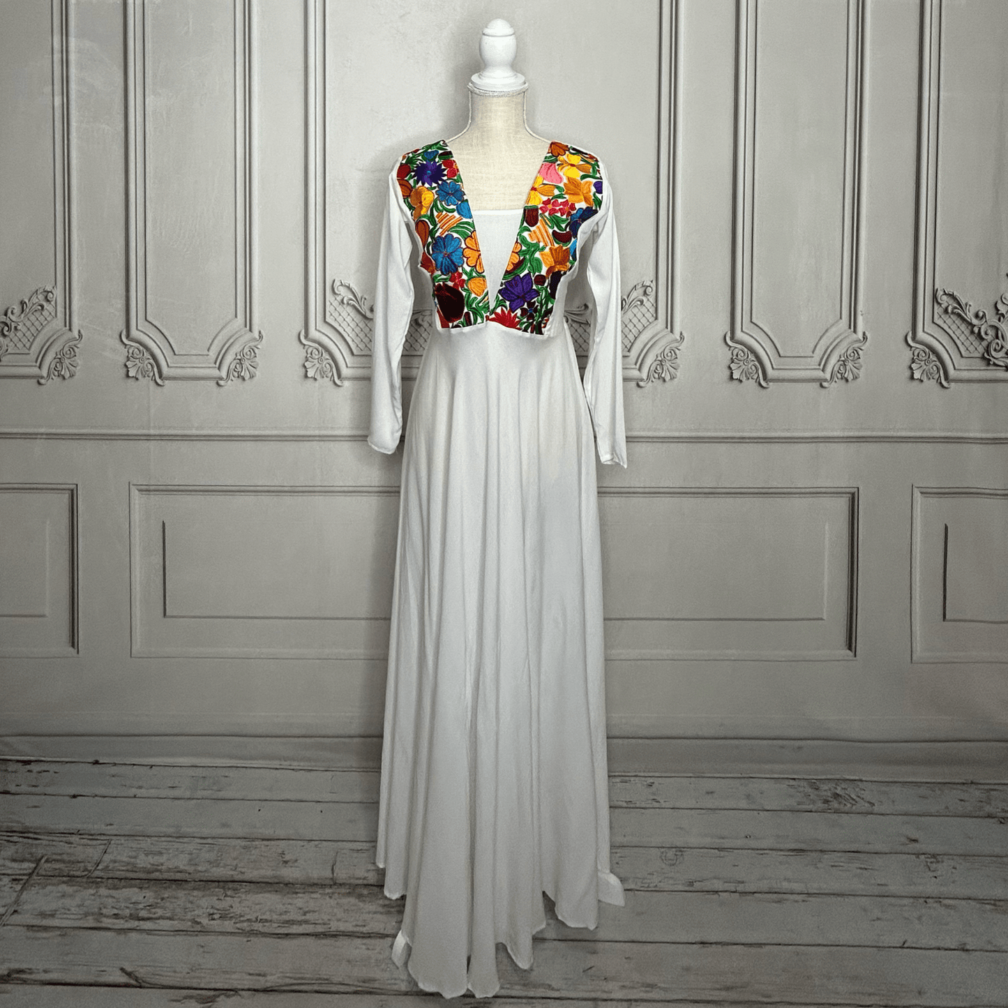 Zinia Mexican V-Neck Maxi Dress - 3/4 Sleeve Rayon